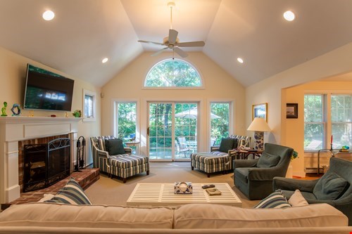 Elegant and timeless home in the heart of Katama. The home features an open concept living and kitchen area with a separate dining room for those special occasion meals. Sliders open to a spacious patio with outdoor shower. A three season porch with adjoining deck offers endless opportunities to entertain guests. There are 3 bedrooms on the 2nd floor, and the Master Suite is privately located above the garage. The neighborhood amenities include a footpath to a private beach area and the potential for docking a boat via the association dock.