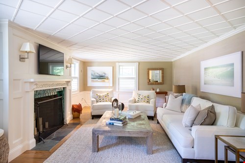 Behind the historic façade are rooms of gracious proportion and grand scale, with plentiful natural light, modern amenities, and exquisite craftsmanship. A recent renovation meets the highest standards and includes over 3800 sq. ft. of living space. The first floor features a gourmet kitchen with professional appliances, dining room, spacious living room with fireplace, home office, walk-in pantry, and powder room. The second floor features 3 guest bedrooms each with en-suite baths and a master bedroom suite with a private porch and 2 full baths. The fully finished lower level includes a media room with a projection screen and state-of-the-art sound, rec-room with stunning brick detail, sauna, full tile bath, bunkroom, and laundry room. An inviting bluestone patio surrounded by gardens adorns the rear of the property and is perfect for outdoor entertaining. Beautiful gardens, outdoor shower, and stone fireplace complete this outdoor oasis. A truly spectacular residence, 71 State Road awaits a new owner to enjoy gracious living while being close to Downtown Vineyard Haven shops, restaurants, harbor, and ferry. Excellent rental potential and ample off-street parking.