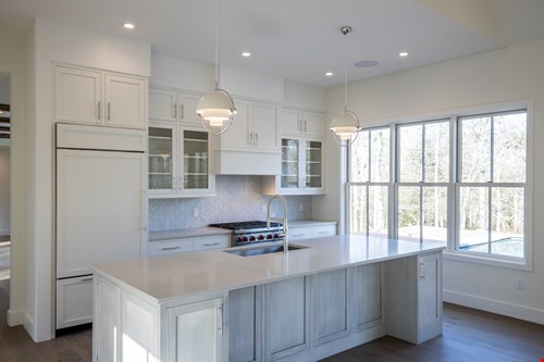 Brand-new 4,100 sq ft home on 6.2 acres located at the upper end of Indian Hill Road, a short distance past the picture postcard vistas of Arrowhead Farm. Architect-designed 5-bedroom home with swimming pool was completed in May, 2019 by top Island builder. High-end features include Great Room with commanding fieldstone fireplace, red cedar roof and trim, reclaimed beams, silestone countertops, Subzero and Wolf kitchen appliances, plaster walls, and Marvin windows and doors. The large master bedroom suite bathroom has furniture-style vanities, undermount soaking tubs, and Kohler DTV "Prompt" showering system. The land has many charming features including ancient stone walls and a boulder field behind the swimming pool area. Landscaping is by Contemporary Landscapes. The 437-acre Cedar Tree Neck Preserve is less than a mile away on the quiet country road.