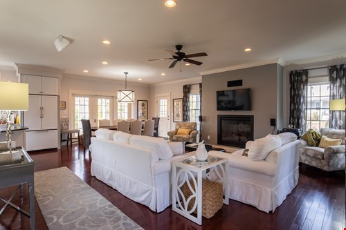 Open living, dining, and kitchen spaces