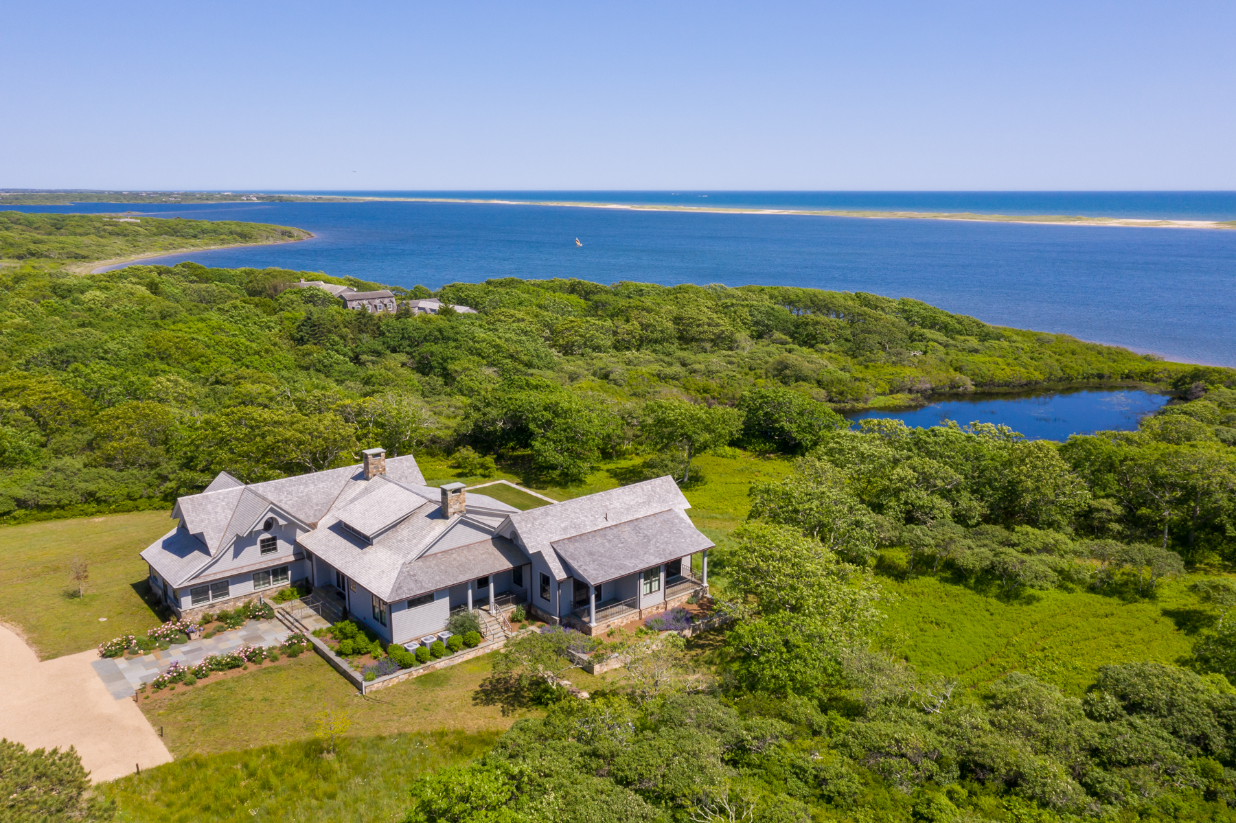 Rarely does a brand new home become available in such a distinguished neighborhood. Set on 14 waterfront acres in Boldwater on the south shore of Martha’s Vineyard stands this 4,250 sq foot home built to the very highest specifications. The open floor plan allows the entire family to gather in the Great Room with living, dining, and kitchen areas all combined beneath soaring cathedral ceilings. The bedrooms are large and offer gorgeous water views. There are several outdoor spaces to take full advantage of the stunning natural surroundings. In the morning you can sit and enjoy a cup of coffee while you watch the osprey swoop and soar to the background music of the ocean waves. The screened porch is a gathering place in the evenings before dinner is served. A short boardwalk leads to your private shoreline on the shores of Edgartown Great Pond, where a mere 10-minute boat ride has you stepping into the barrier beach and the great Atlantic Ocean. There are recreational opportunities for young, old, and everyone in-between - sailing, paddle boarding, kayaking, swimming, fishing, surfing, and many miles of trails for walking or biking right from your back door. Guest house and swimming pool are permitted.