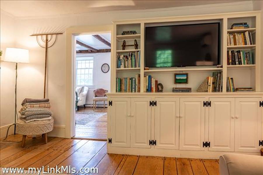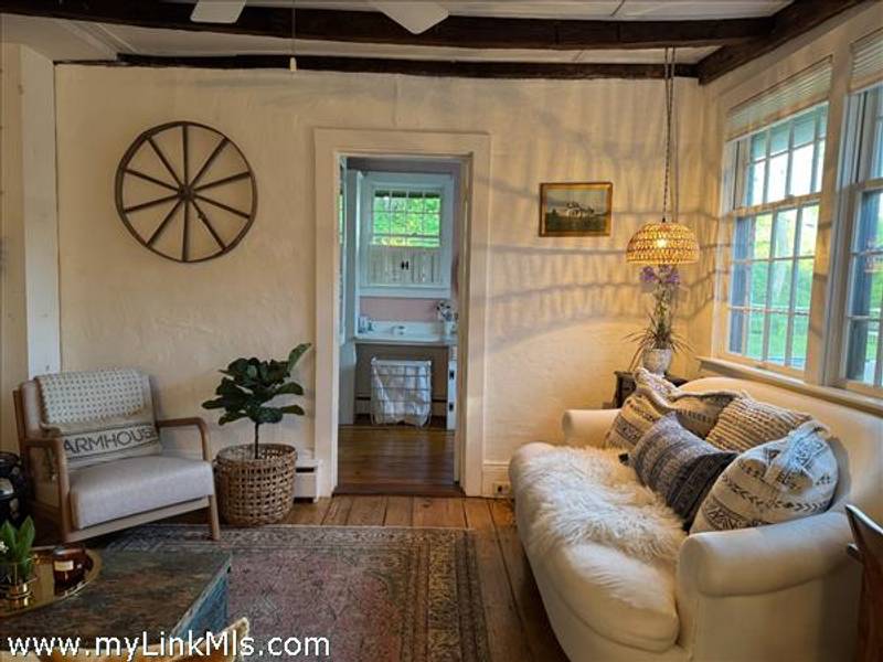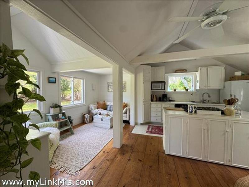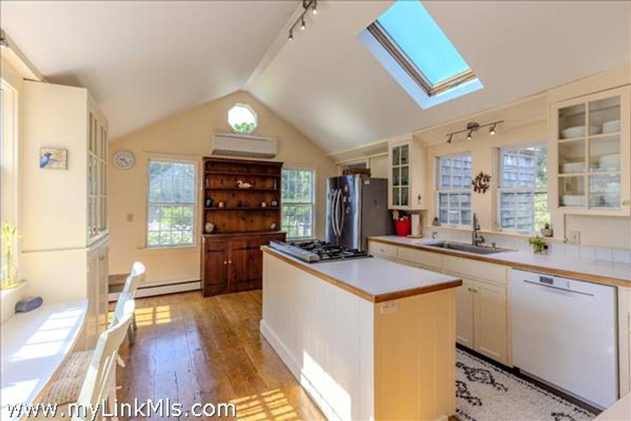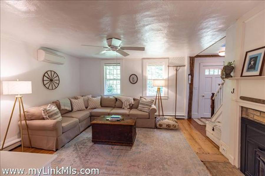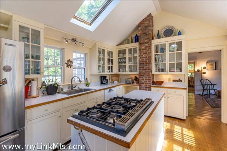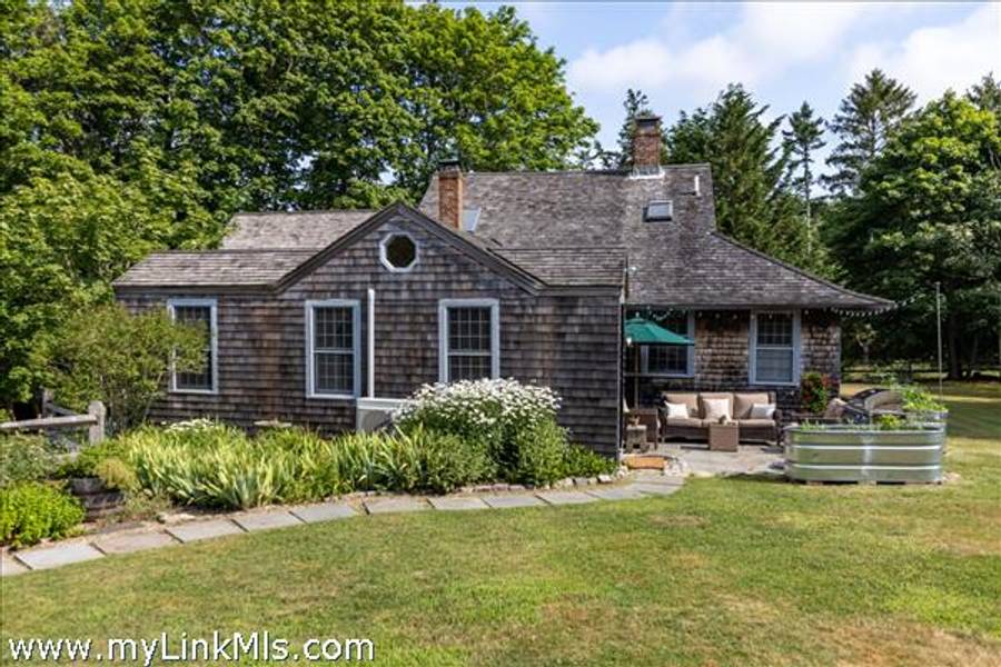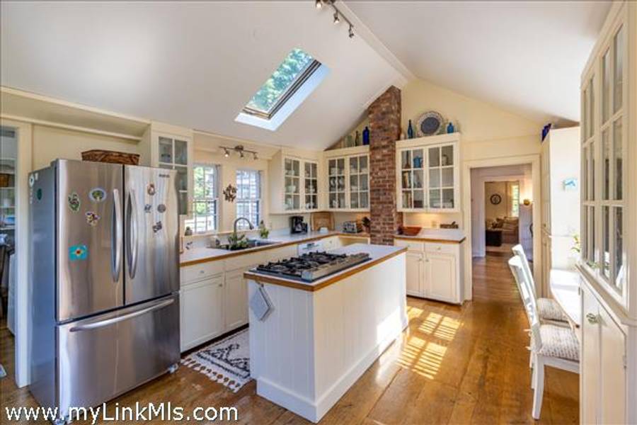 HOUSE + GUEST HOUSE: Historic 4-Bedroom 2-Bathroom Main House & 1-Bedroom 1-Bathroom Cottage. Located on a lush 1.27 acres and just a short distance from Alley's General Store, 7a Foods + North Tisbury, this property has all the makings of a perfect family compound. With plenty of space for lawn games and gardens and no shortage of history & charm. There has been so much care put into its thoughtful layout, updates and additions over the years. From the patio entry you will arrive into the bright, custom kitchen with vaulted ceilings, a generous center island and sizable Verona gas range. Enjoy plenty of work space and additional storage in the walk-in pantry. From there the kitchen then opens up to the dining area and additional sitting area, with exposed beams, period plaster walls, wide wooden floorboards and one of two brick fireplaces. The first floor is completed with three of the four bedrooms, a full bath and a separate living room with built-ins and a second fireplace. On the upper level you will find the 4th bedroom with original king’s wood, wide floor boards, custom details and the second full bath. In addition to the Main House, there is also a 1-bedroom Guest Cottage tucked at the back of the property with a spacious deck, private yard, outdoor shower and its own parking. Built in 1970 this 1-bedroom 1-bath cottage, has a bright entry and open living area as well as a cute bonus loft above the living space. This has great income potential. Both homes have passed Title 5 Septics and are just waiting for you to call them home. The property has been lovingly updated over the years to maintain its charm and showcase its historic character & lives larger than expected from the outside.