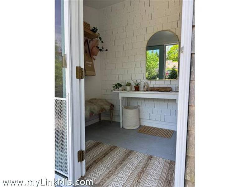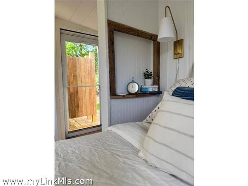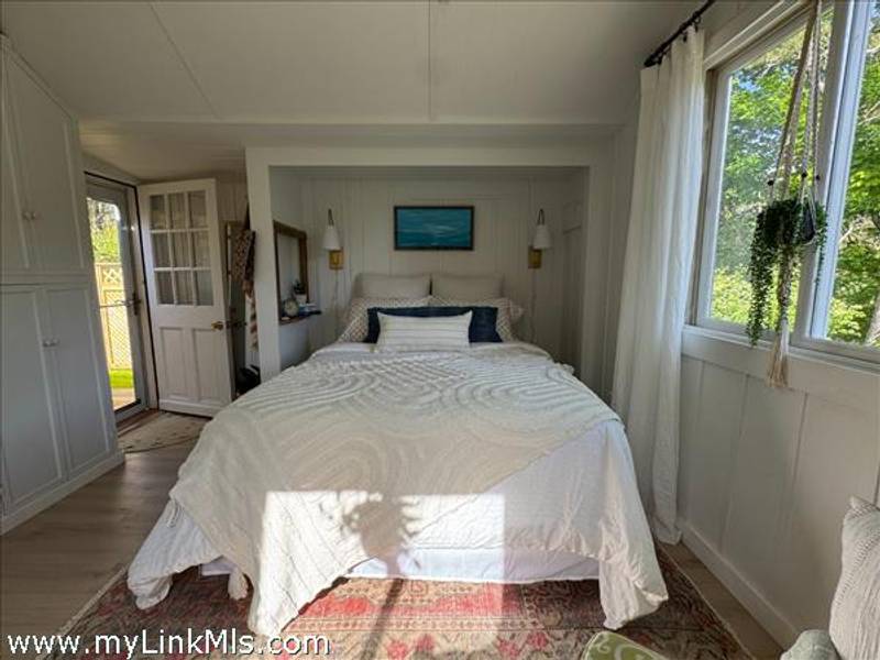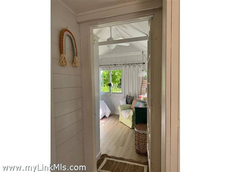 Single story cottage with updated mud room entry, open living dining area, 1 bedroom and 1 updated bathroom, outdoor shower, separate parking and yard