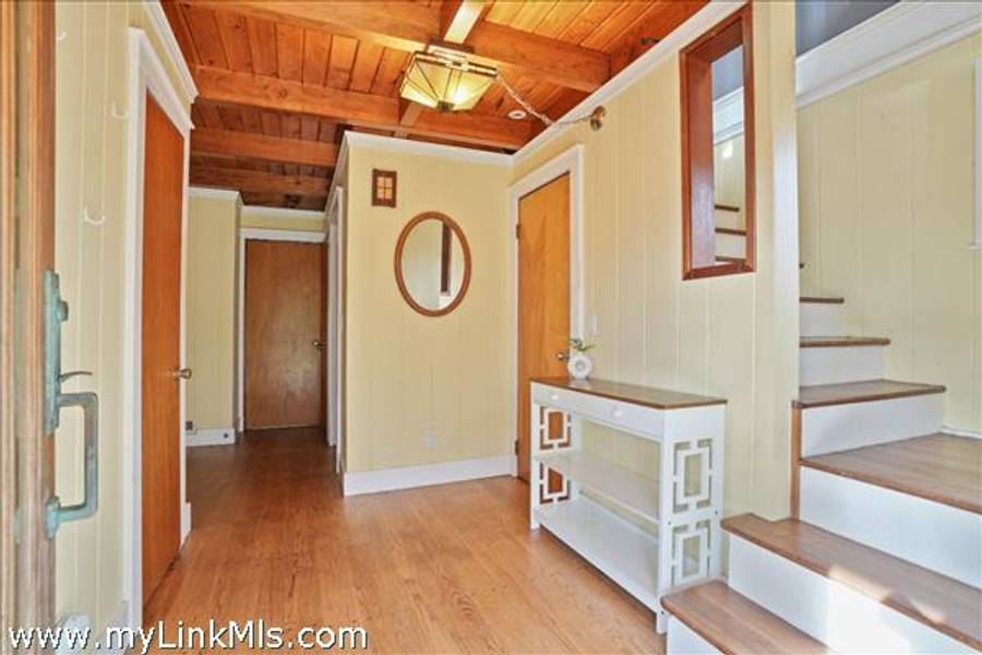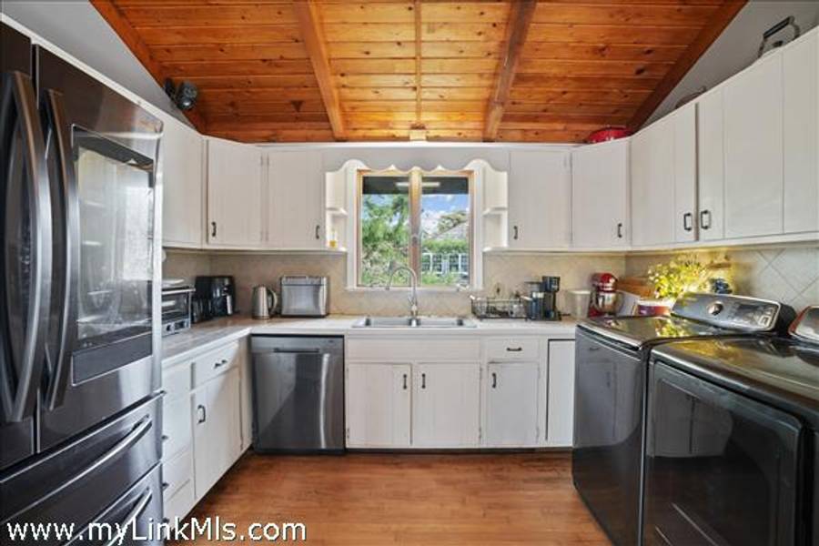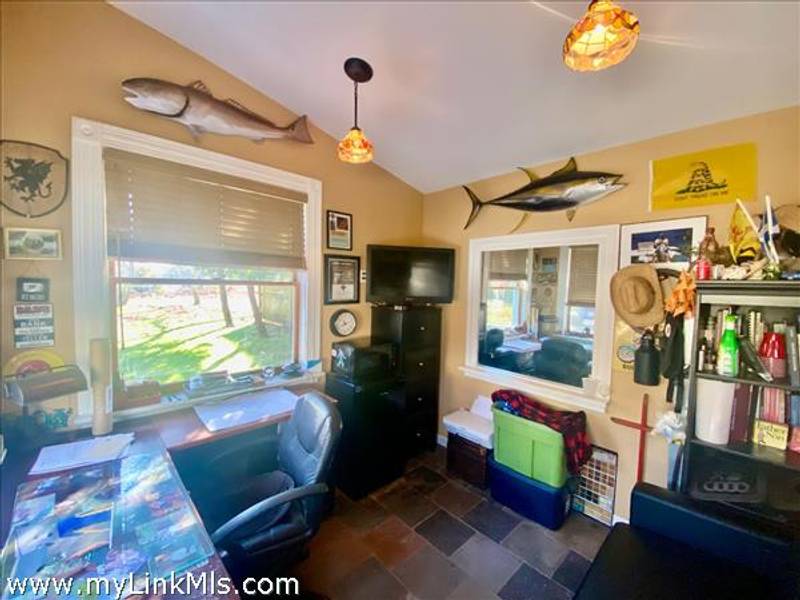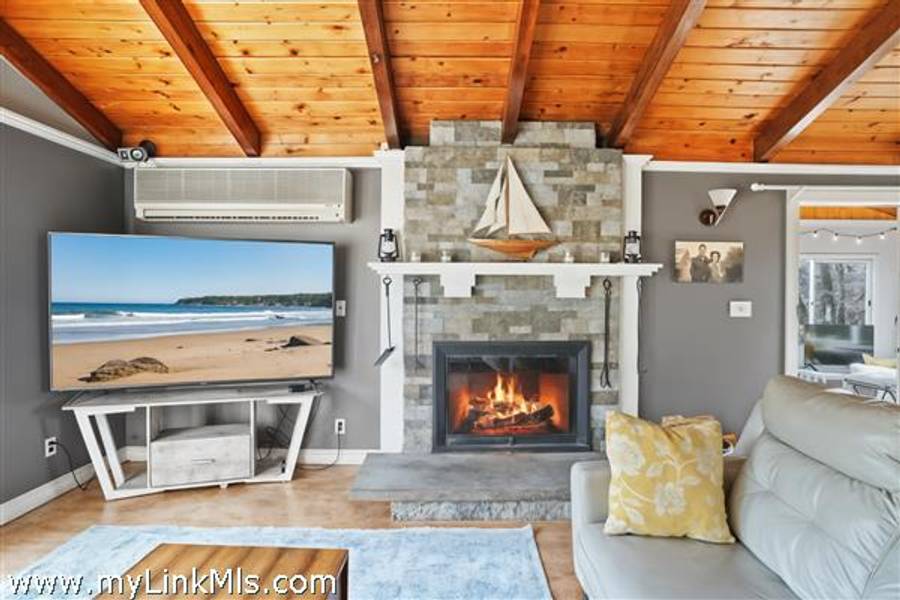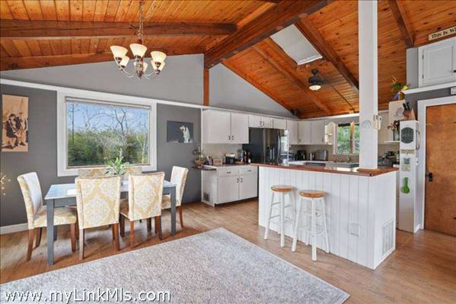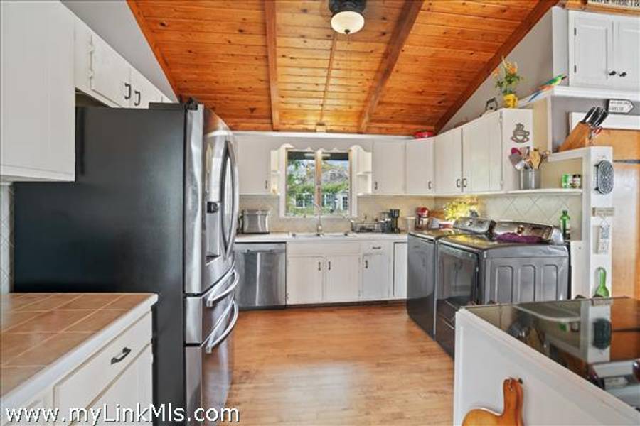 Set on just over half an acre near downtown Oak Bluffs abutting permanently preserved acres by Land Bank - a rare find in central Oak Bluffs! This home blends classic Midcentury architectural character with abundant natural light from floor-to-ceiling windows and soaring post-and-beam ceilings creating a warm and inviting space. The interior features hardwood floors in the dramatic great room highlighted by an impressive wall of windows that fills the space with sunlight and frames serene views of protected pastoral land. The open-concept kitchen, dining, and living areas are anchored by a striking fireplace, creating an inviting setting for gatherings. Just off the kitchen, a charming, screened porch offers a cozy three-season retreat, perfect for morning coffee or evening relaxation. The main level includes three generous bedrooms and a full bath. while the walk-out basement provides a workshop area with sink and storage room. Outside, the property is thoughtfully landscaped with irrigation with mature rows of Arborvitae trees, giving it a private, park-like feel. A back patio and a detached office offer additional spaces to work, unwind, or take in the peaceful surroundings. Conveniently located, this property is within walking distance of the Oak Bluffs School, the Tradewinds walking trail just across the street, bike paths, and public transit. Downtown Oak Bluffs and the beach are only minutes away- an ideal combination of privacy, convenience, and potential. This lot could provide potential options for future enhancements such as expanded living space, a garage, guest house/ADU… Building possibilities should be explored and reviewed in accordance with town bylaws. Note: The property is being sold as-is, and the buyer will be responsible for replacing the existing septic system.