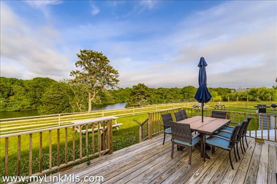 An exceptional Waterfront Compound on Tisbury Great Pond. Located across the Tisbury Great Pond from the exclusive Blue Heron Farm, this remarkable waterfront property offers a rare opportunity to own a serene compound with two homes and a private permitted dock—ideal for boating to the Atlantic barrier beach, fishing, kayaking, and enjoying the peaceful beauty of the pond. Both the main house and guest house boast unobstructed water views, creating a tranquil and picturesque setting perfect for birdwatching, relaxation, and year-round enjoyment. The main house features 4 bedrooms, 2.5 bathrooms, central air conditioning, screened porch for stunning sunset views, den/sunroom with wet bar plus a spacious unfinished basement for additional potential The guest house provides an additional 2 bedrooms, 2 bathrooms and has its own separate three-bedroom septic system. The guest house has been recently updated with new roof, windows, and cedar shingle siding. Additional highlights for this property include a permitted dock for direct pond access and a generator. There is no waiting period to add a pool, barn, or expand on the 3 acre property—unlike in nearby Chilmark. This central location with close proximity to both West Tisbury village and all island towns, offers a perfect blend of up-island privacy with down-island convenience. This is a rare opportunity to move in immediately, renovate to your taste, or rebuild over time—all while enjoying the best of Martha’s Vineyard living in an exceptional natural setting.