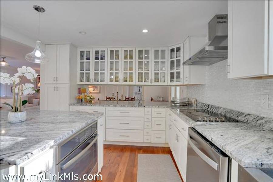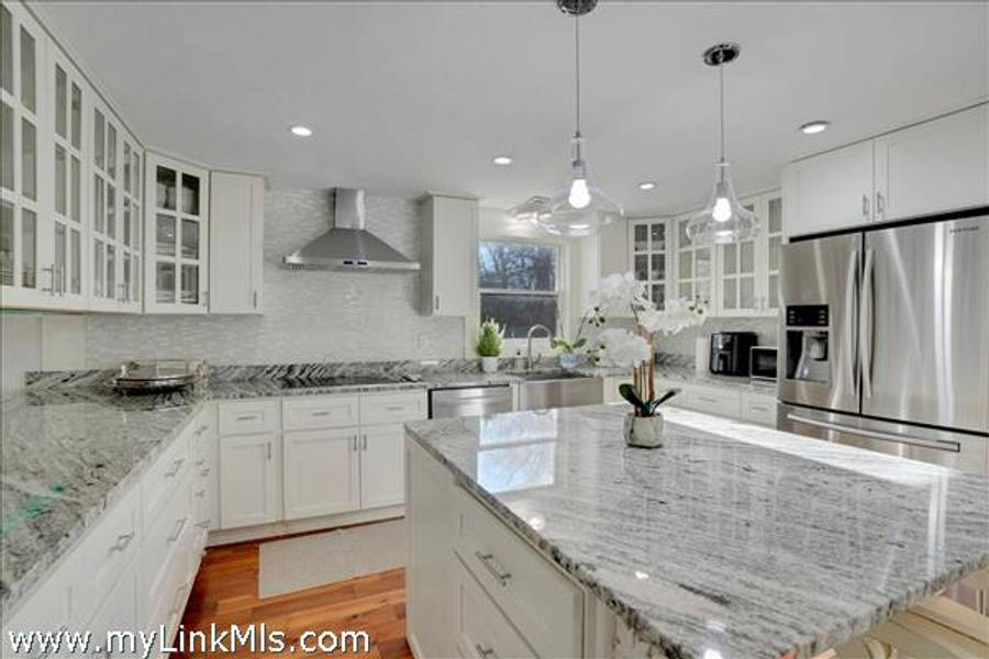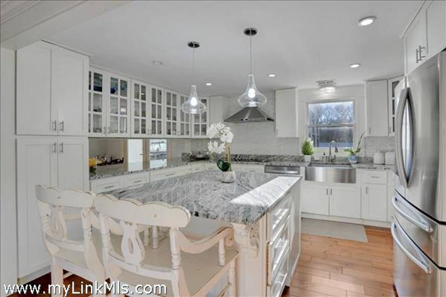 Minutes to downtown and the ferry, this updated year-round home checks every box buyers are asking for right now: space, flexibility, and a move-in ready setup in a highly convenient location. 3 bedrooms, 4 bathrooms, and over 3,000 sq ft of living space, including a private lower-level apartment ideal for guests, extended family, or income potential. The main level offers hardwood floors, a renovated kitchen with granite countertops and stainless appliances, and an open living/dining area with fireplace that flows effortlessly for everyday living and entertaining. The primary suite features a private bath and balcony access. The lower level adds a second living/media room, fireplace, laundry, and direct access to the garage. So many upgrades are already done: new roof (2019), 7 mini-splits, updated kitchen and baths, new windows and doors, plus a bright enclosed sunroom. Outside, enjoy a fenced yard, multiple balconies, outdoor shower, firepit, and grilling area, along with a detached garage for boat or vehicle storage. Set on a quiet cul-de-sac with access to 109 acres of trails just beyond your doorstep. Waterloo Biofilter septic system in place (no upgrade required). Title V passed. Water line tested and passed. 4,568 gross sq ft. A rare combination of size, condition, and location this close to town.