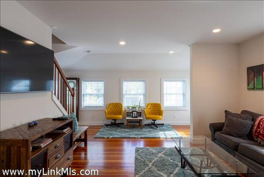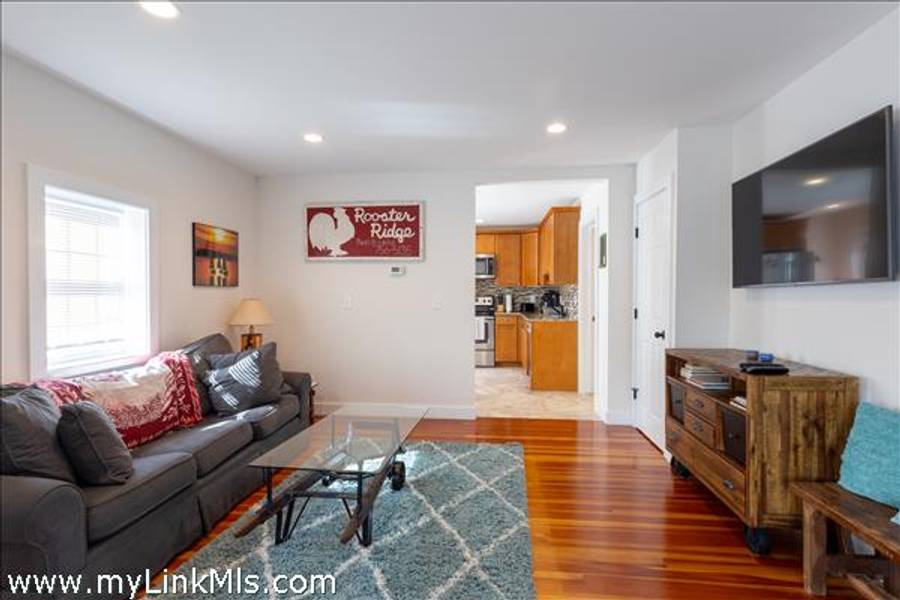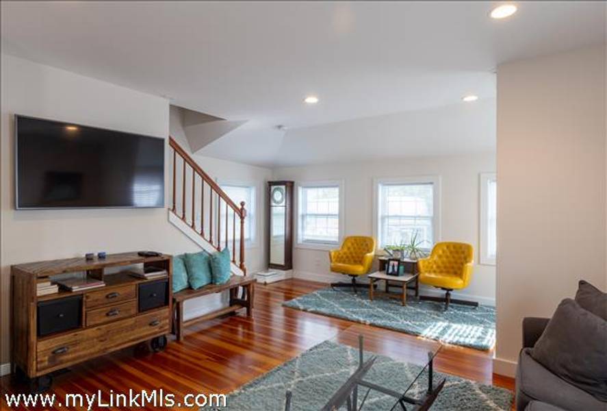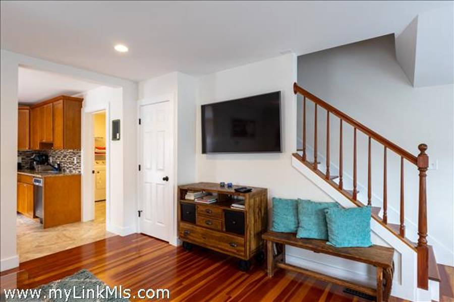 The FRONT HOUSE offers Light-filled living room with hardwood floors, two bedrooms upstairs, and ceramic tile in both the kitchen and bath for a fresh, low-maintenance finish.