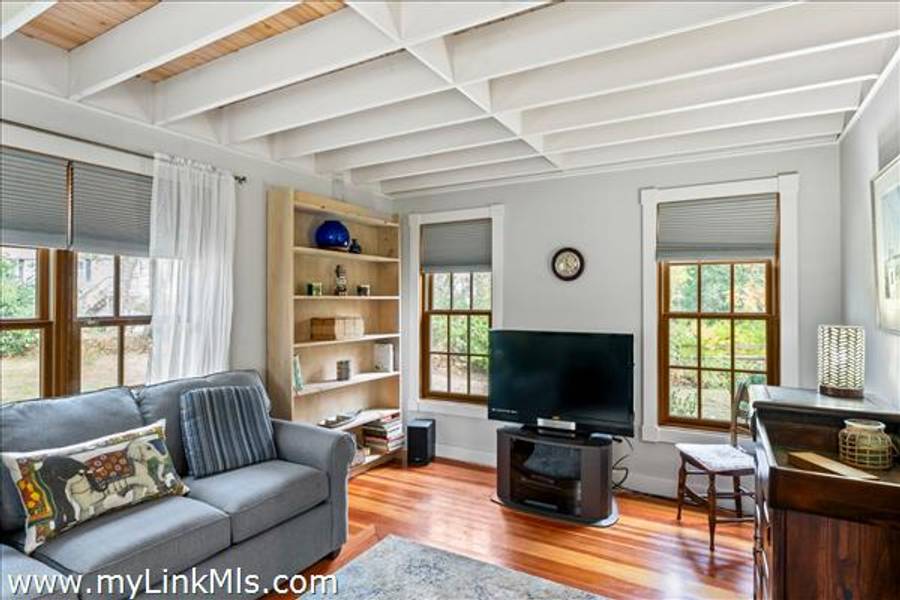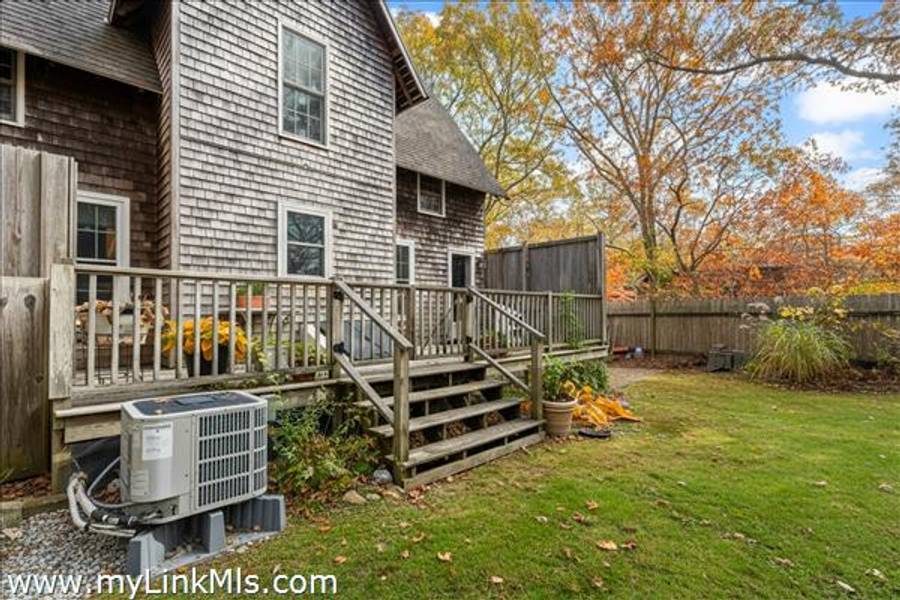 Charming, custom-built, 3-bedroom, 1.5-bath Oak Bluffs home on a quiet circle, offering a peaceful setting with convenient access to down-island attractions, year-round ferries, and miles of ancient way trails through acres of conservation land. Well-maintained with many decorative details, features include a large primary bedroom, a convenient first-floor bedroom, and an open kitchen dining area flowing to a spacious wooden deck and outdoor shower—perfect for indoor-outdoor living. Beautifully maintained with wood floors, skylights, and natural light throughout, this move-in-ready home blends comfort, character, and charm. The floor plan offers privacy between the 3 oversized bedrooms. Ideal for year-round living or a seasonal retreat.