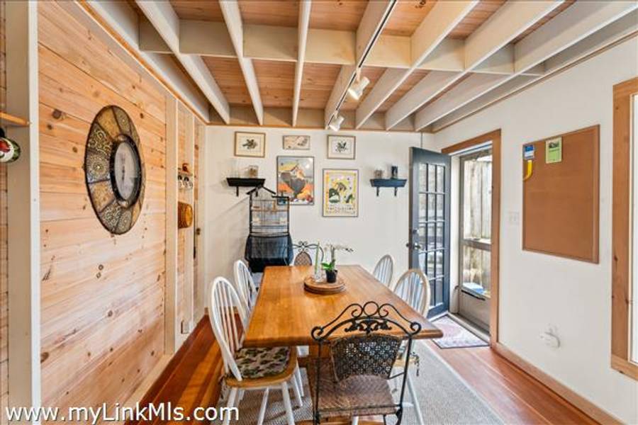 Step inside to the main hall from the covered front porch. Wood floors throughout the main living areas including a large first floor bedroom, a large living room with beadboard and beamed ceilings. A compact kitchen opening into a dining area with door to the deck for indoor-outdoor entertaining. A half-bath and laundry alcove with full-size washer and dryer complete this level. From the deck, step into the large outdoor shower or through the gate to the fenced-in backyard.
