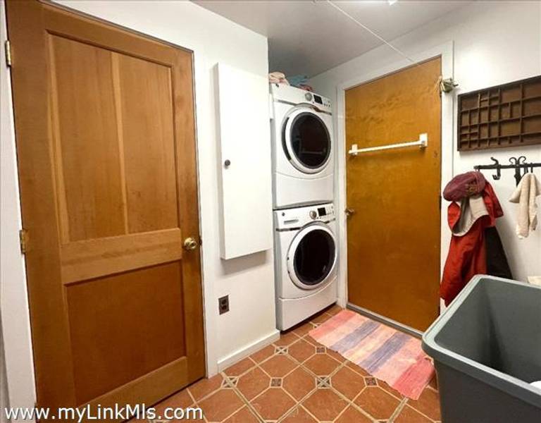 From the front door one enters the mud room area immediately adjacent to the living room. There is a dining room with a slider leading to the rear mahogany deck, a galley kitchen, a bedroom, half bath, and laundry room with doorway to the attached garage.
