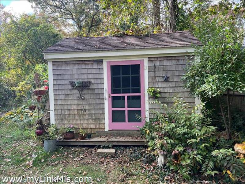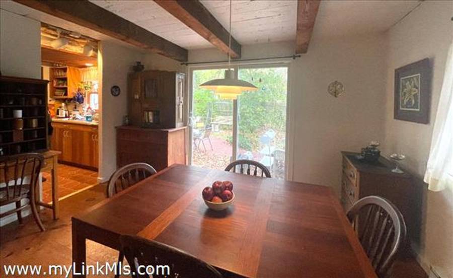 Move-in ready 3-bedroom, 1.5-bathroom house with a warm and welcoming interior. The main level includes an efficient kitchen, living room, dining room with sliders to the mahogany deck and outdoor shower, 1 bedroom, laundry, and convenient half-bath. A one car garage is attached to the main level. The 2 large bedrooms and a full bath are located upstairs. Enjoy the private backyard with its well established perennial gardens, complete with a "she shed"—perfect for relaxing or entertaining. Great location on a paved road with easy access to kayaking, the bike path, Felix Neck, and Town.Title V has passed. Owner occupied- 24 hrs notice to show please.