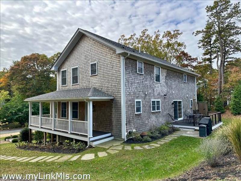 This Colonial Style home with wrap around porch is beautifully maintained and nicely sited on almost a half acre. The first floor is thoughtfully designed and offers an open floor plan that includes an ample mudroom with half bath and is just off the side porch that takes you into the well equipped kitchen with a center island, stainless appliances, custom cabinetry and dining room with sliders to a peaceful and private deck. Living room offers a comfortable space for TV and relaxing. There is also nice size first floor primary with walk-in closet and spacious en-suite bathroom. The grand entryway takes you to the second floor which offers a second primary bedroom with walk-in closet and en-suite bath. There are two guest rooms that share a bath and second floor laundry. Wood and tile floors throughout, propane FHA with A/C. The walkout basement features 10'ceiling height and is ready to be finished off for additional living space, workshop or office.