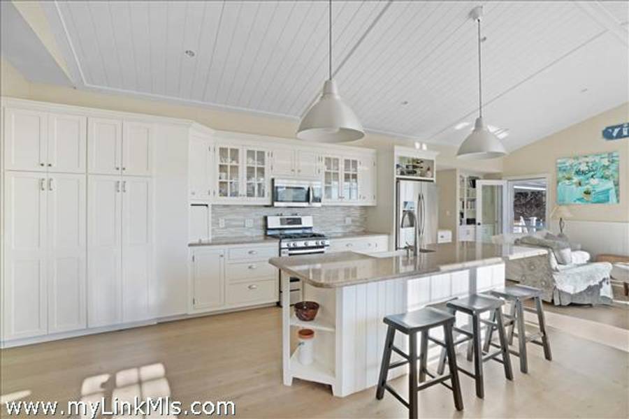 Downtown Vineyard Haven with Harbor Views. Positioned between the energy of Main Street and the quiet prestige of West Chop, this location delivers a rare balance of downtown access, privacy, and harbor frontage. Built in 2015, the three-bedroom, two-bath modern ranch is designed for easy first-floor living with expansive water views. Wide, harbor-facing windows showcase the meadow and water beyond. The interior feels open, calm, and intentional, with spaces that flow naturally toward the outdoors and keep the focus where it belongs. Outside, the landscape opens gently toward the water. A private beach path sits immediately adjacent to the Vineyard Haven Yacht Club, offering sailing, tennis, dock access, and a café just steps away, an uncommon amenity pairing in such a peaceful, natural setting. Whether enjoyed as a personal escape or leveraged as an income-producing property, the home’s strong rental history reflects its wide appeal. A rare opportunity to own directly on Vineyard Haven Harbor, with a mooring available and the best of Martha’s Vineyard right outside your door.