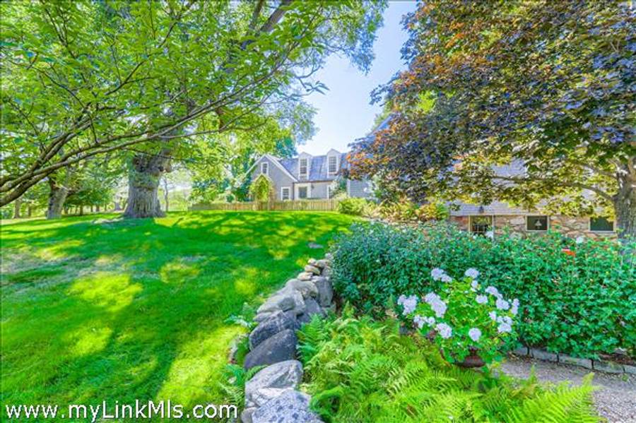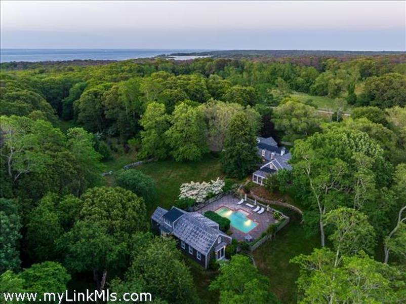 A storybook sanctuary in Pilot Hill. For the first time in 37 years, one of the rarest and most beautiful properties within Pilot Hill Farm is being offered for sale. Set on nearly eight acres, this unique estate includes a thoughtfully renovated antique farmhouse and several distinctive outbuildings: a pool, guest house, an art studio, and a carriage house with room for three cars, plus a second studio above. The main home dates from 1730 and has been lovingly restored over the years. Carefully preserved original details—such as hand-painted Siberian elm floors, gunstock posts, a Dutch door, and four fireplaces—coexist with thoughtful upgrades throughout. The main residence offers five bedrooms and four bathrooms, a large kitchen, separate dining room, cozy living room, a great room with a tranquil screened porch that overlooks the heated saltwater pool. The pool/guest house adds two more bedrooms, bathroom, and a large double height living room that overlooks the meadow. The grounds evoke an arboretum-like feel, with mature trees, open meadows, stone walls, a picturesque pond, babbling brook and perennial gardens. Stroll to the farm for fresh eggs, or to the beach for an evening walk. This is a natural haven in a magical setting, yet just minutes from Vineyard Haven's shops, restaurants, and the ferry.