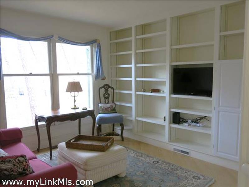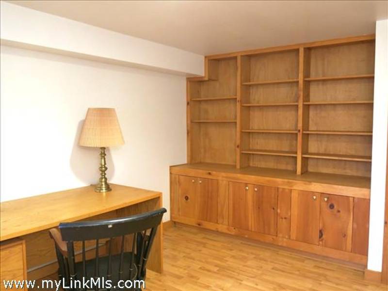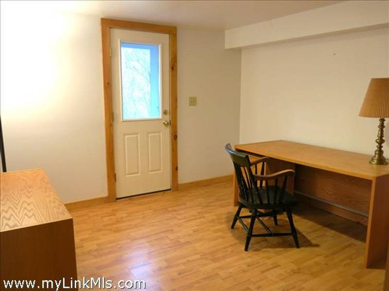 Full basement. A finished room, with a bank of built-ins opens directly to the outside through a glass "windowed" door letting in direct sunlight. This room has been used as a study but could easily be an exercise room, or hobby center. The unfinished portion of the basement is clean and dry with several sets of storage shelves.