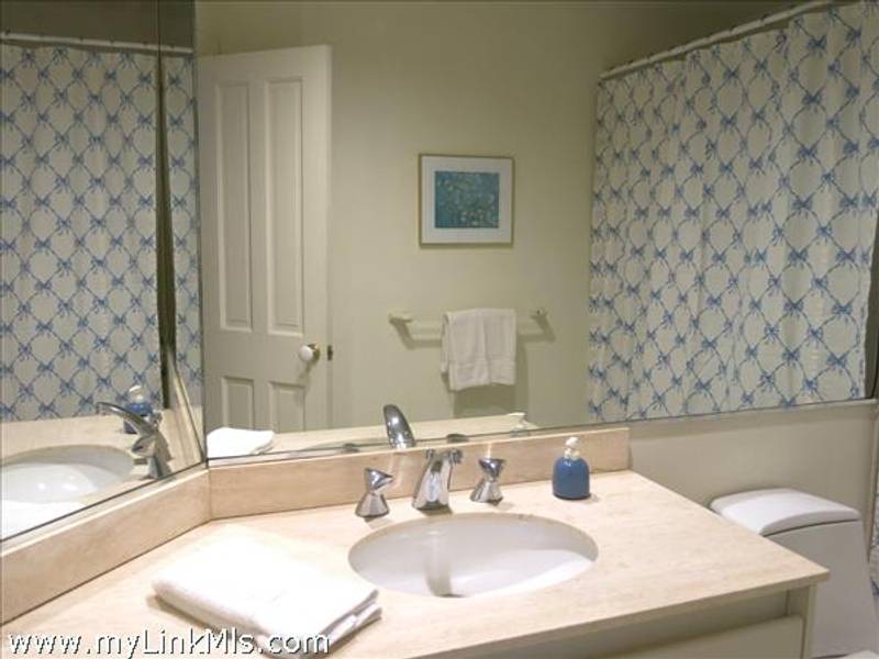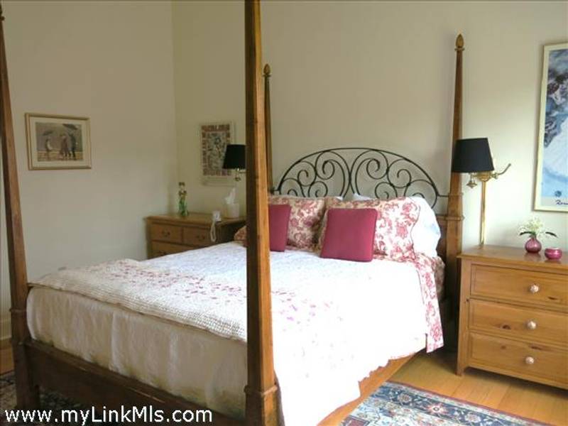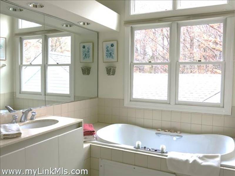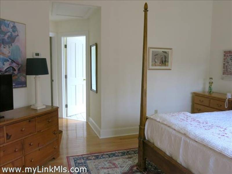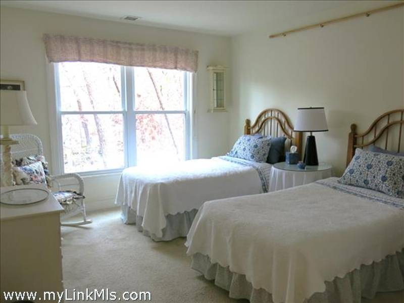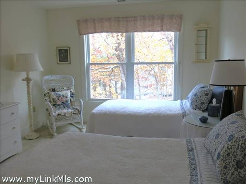 Lovely primary suite with vaulted ceiings, large tiled bath and generous walk-in closet to the left at the top of the stairs. Across the landing is the sunny guest bedroom, again with its own bath.