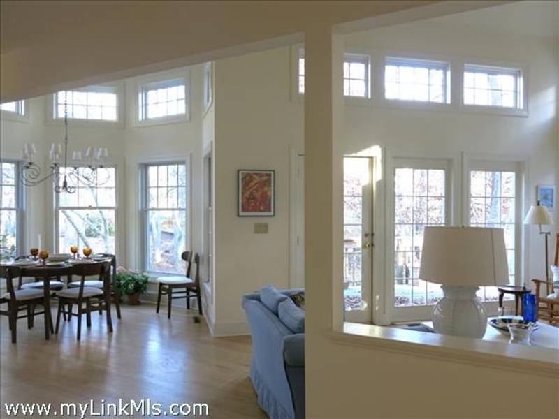 Experience sun-drenched living in one of Tashmoo Woods’ most desirable floor plans. This beautifully maintained 3-bedroom, 3-bath home offers full access to the coveted Tashmoo Woods amenities, including a pristine pool and pool house, multiple tennis courts, a children’s play area, a private launch on Lake Tashmoo, and a beautiful Association beach on the Sound. Inside, soaring ceilings and clerestory windows fill the living and dining areas with incredible natural light, creating an inviting, airy atmosphere. The eat-in kitchen features an entire wall of windows and glass doors that seamlessly blend indoor and outdoor living. The first-floor bedroom — currently enjoyed as a cozy study — sits next to a full bath, offering flexible options for guests or single-level living. Upstairs, the spacious primary suite boasts vaulted ceilings, an ensuite bath, and an enviable walk-in closet. A charming third bedroom with its own ensuite bath completes the upper level. Setting this unit apart, however, is the rare full, walk-out basement and here there is already a finished bonus room — ideal for a gym, home office or creative workspace. Of course, there is also a garage, an attached shed and the must-have outdoor shower.Could you add Offered TURNKEY for immediate enjoyment - this home is ready for its next chapter - whether as your year-round retreat or seasonal sanctuary. Easy to Show.
