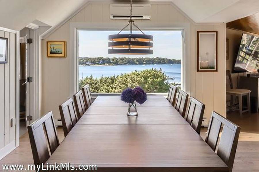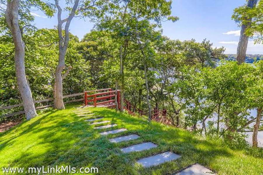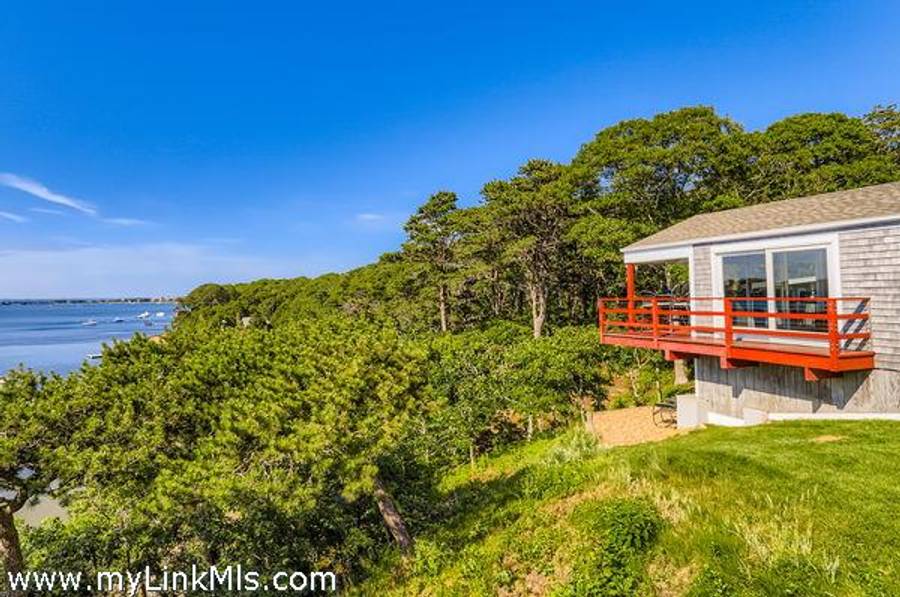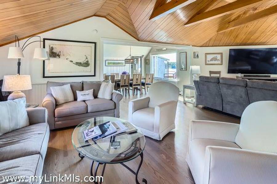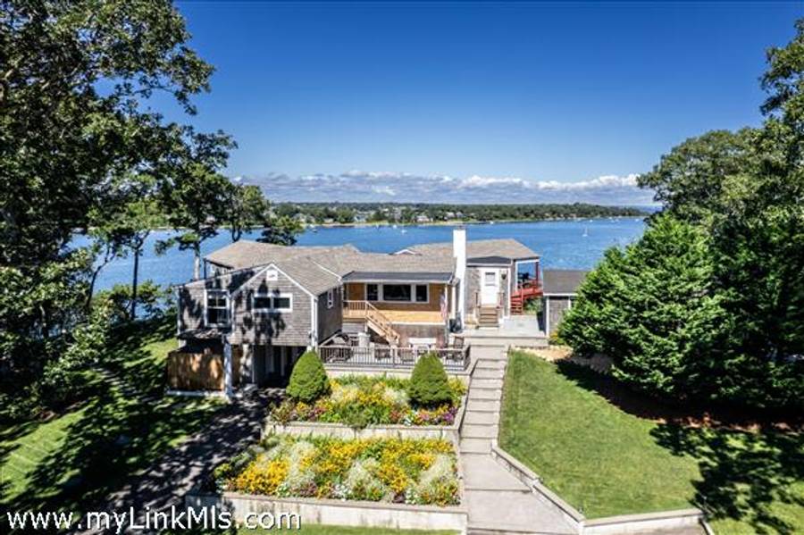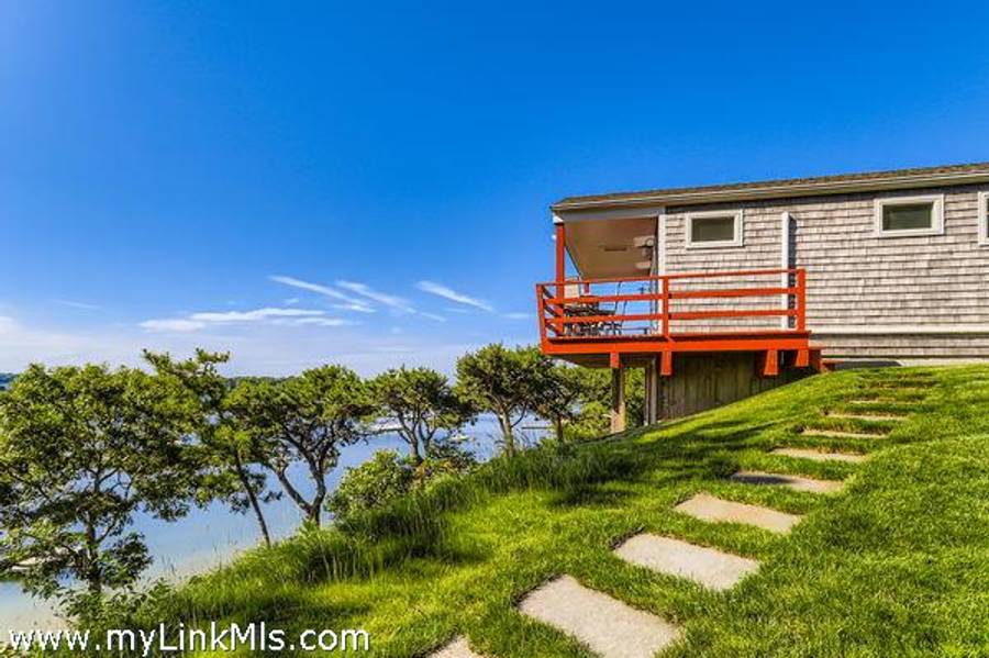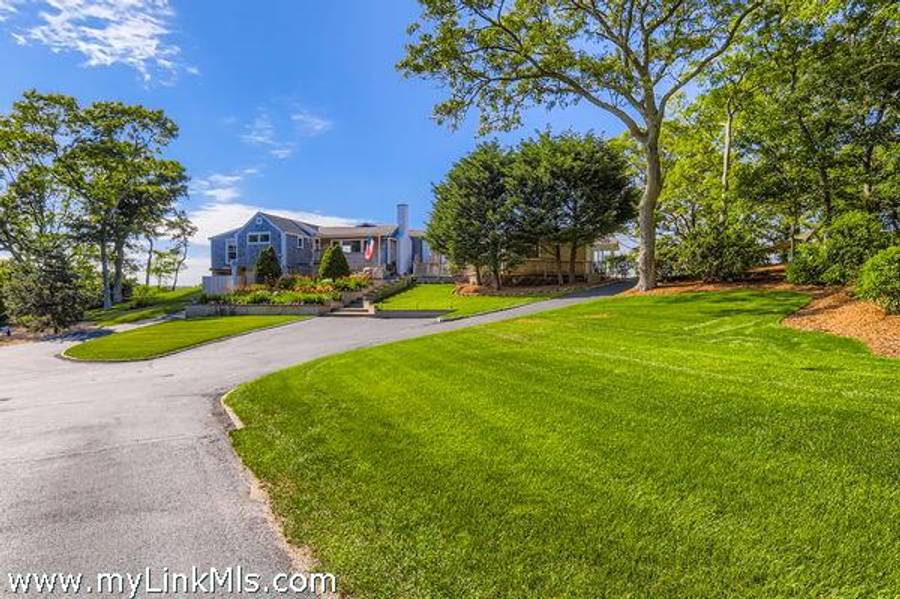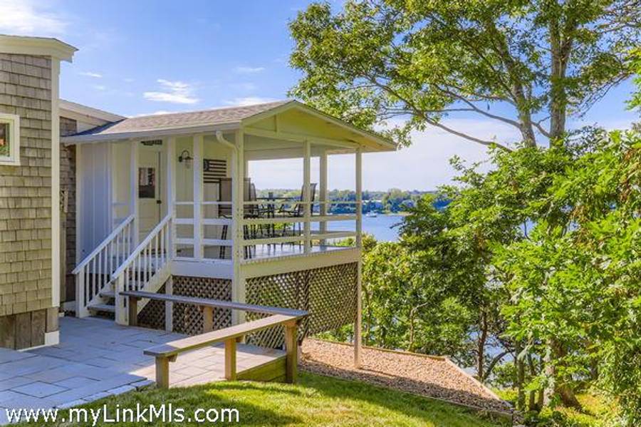 This exceptional waterfront estate offers unmatched panoramic views from house and guest house with extraordinary privacy on a nearly two acre setting rarely found in this coveted Oak Bluffs location. Commanding sweeping vistas of Lagoon Pond, Vineyard Haven, Hines Point, the iconic drawbridge, Vineyard Sound, and even distant views of Cape Cod. The property includes a renovated three-bedroom main residence and a two-bedroom guest house, each thoughtfully oriented to capture the ever changing light over the water. The main home offers a spacious open layout with generous living, dining, and sitting areas, ideally suited for entertaining and family gatherings and all with stunning views of the water. A large, bright kitchen serves as the heart of the home, while the living room, dining room, primary bedroom and two elevated decks provide front row seats to boating activity, wildlife, and some of the most spectacular sunsets on the island. The primary bedroom is a serene sanctuary with floor to ceiling water views that feel truly immersive. A second main level bedroom also has water views and its own full bath. On the lower level, a bedroom suite includes a comfortable sitting area with a TV, and spacious full bath. The guest house is a retreat unto itself, offering equally stunning water views from kitchen, living room and private porch. Its large primary bedroom features ample space, while the additional bedroom is a cozy, private nook. Outdoors, the estate’s expansive grounds offer a rare combination of beauty, privacy, and direct waterfront access. Private steps lead to the property’s own sandy beach and mooring, where guests can enjoy swimming, boating, kayaking, paddle boarding, fishing, or simply savor the extraordinary natural beauty. An amazing variety of birds, including osprey complete the scene out on the water. The property also borders 14 acres of conservation land with scenic walking trails, enhancing the sense of seclusion, privacy and connection to nature. This is a truly remarkable island estate that has had only 3 owners in the past 65 years. This is a generational opportunity to enjoy and improve this family compound with unforgettable views, refined living spaces and unparalleled waterfront setting.