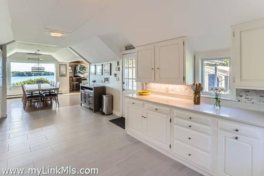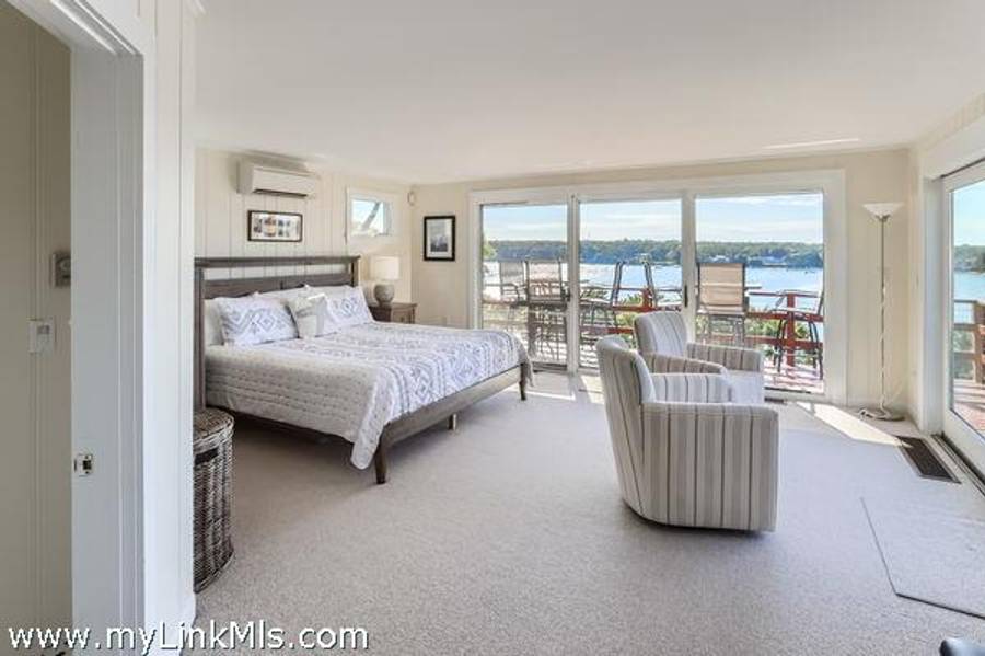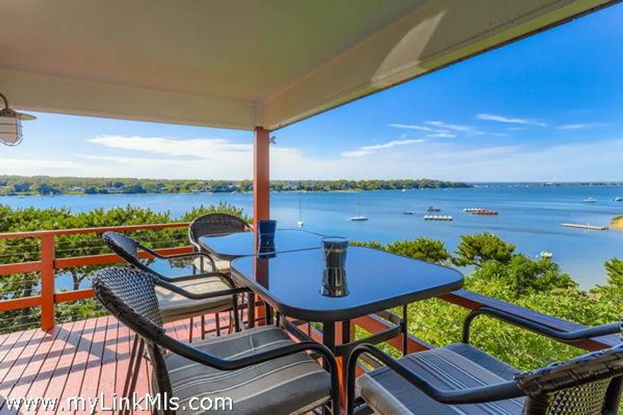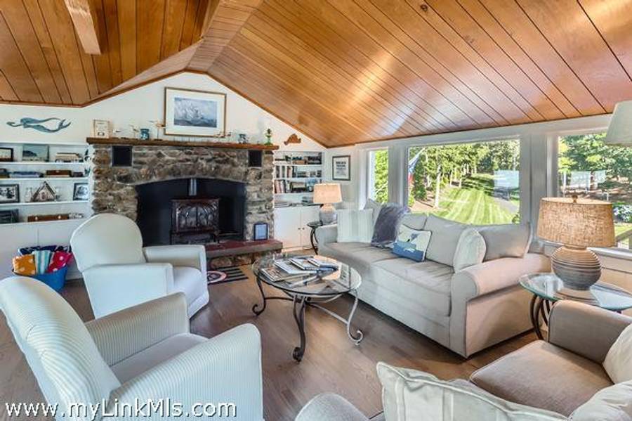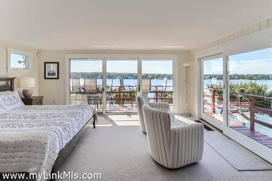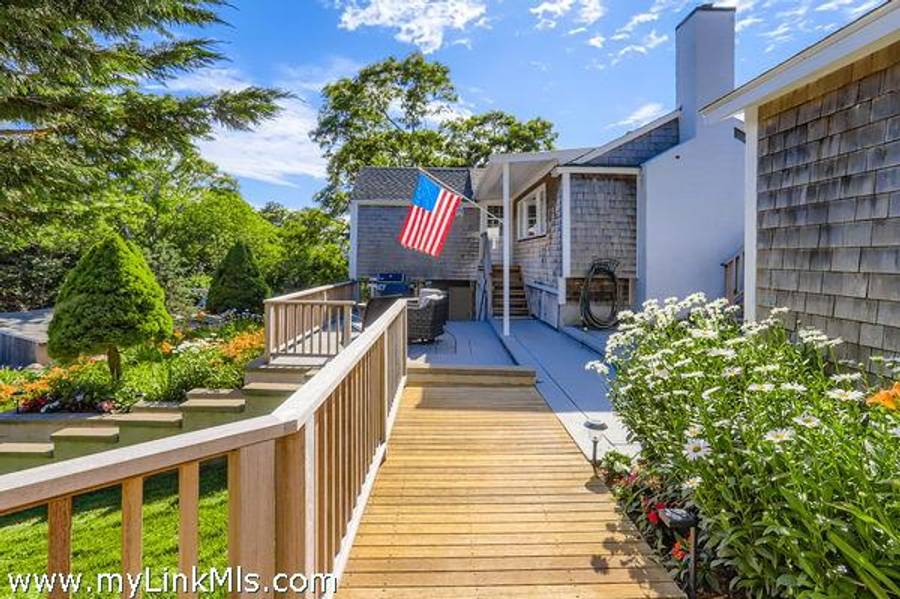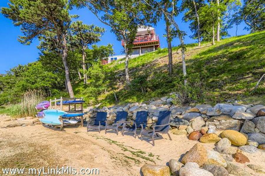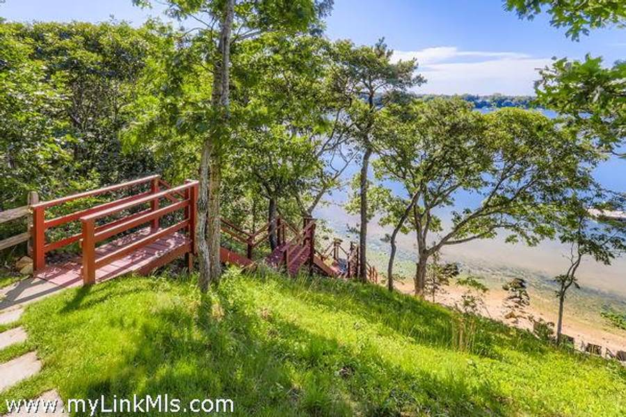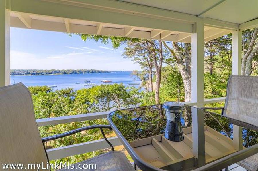 This exceptional waterfront estate offers unmatched panoramic views from house and guest house with extraordinary privacy on a nearly two acre setting rarely found in this coveted Oak Bluffs location. Commanding sweeping vistas of Lagoon Pond, Vineyard Haven, Hines Point, the iconic drawbridge, Vineyard Sound, and even distant views of Cape Cod. The property includes a renovated three-bedroom main residence and a two-bedroom guest house, each thoughtfully oriented to capture the ever changing light over the water. The main home offers a spacious open layout with generous living, dining, and sitting areas, ideally suited for entertaining and family gatherings and all with stunning views of the water. A large, bright kitchen serves as the heart of the home, while the living room, dining room, primary bedroom and two elevated decks provide front row seats to boating activity, wildlife, and some of the most spectacular sunsets on the island. The primary bedroom is a serene sanctuary with floor to ceiling water views that feel truly immersive. A second main level bedroom also has water views and its own full bath. On the lower level, a bedroom suite includes a comfortable sitting area with a TV, and spacious full bath. The guest house is a retreat unto itself, offering equally stunning water views from kitchen, living room and private porch. Its large primary bedroom features ample space, while the additional bedroom is a cozy, private nook. Outdoors, the estate’s expansive grounds offer a rare combination of beauty, privacy, and direct waterfront access. Private steps lead to the property’s own sandy beach and mooring, where guests can enjoy swimming, boating, kayaking, paddle boarding, fishing, or simply savor the extraordinary natural beauty. An amazing variety of birds, including osprey complete the scene out on the water. The property also borders 14 acres of conservation land with scenic walking trails, enhancing the sense of seclusion, privacy and connection to nature. This is a truly remarkable island estate that has had only 3 owners in the past 65 years. This is a generational opportunity to enjoy and improve this family compound with unforgettable views, refined living spaces and unparalleled waterfront setting.