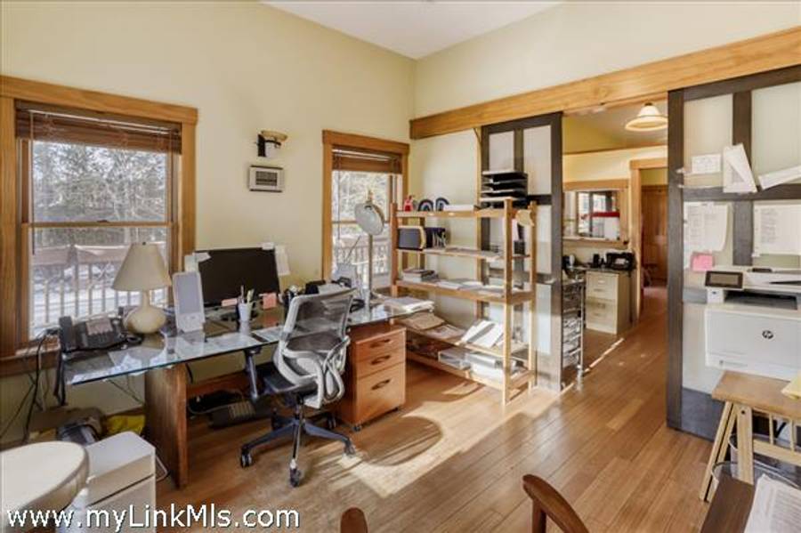 This mixed use building is zoned for residential and commercial use. It is extremely well built with an emphasis on non-toxic materials throughout. High ceilings on all three levels. There are radiant floors mixed with forced hot air/AC. The building offers a variety of uses for a new owner. The existing spaces are very versatile and would be ideal for any service oriented business given the multiple office spaces and a large open room for perhaps physical therapy or treatment space. There is a galley kitchen and two full baths on the main floor as well as three offices (one could be considered a first-floor bedroom), and a large open room with doors out to the parking area. Upstairs, there is a two-bedroom apartment with a full bath, a full kitchen with wood cabinets, and a living room with a fireplace. In addition to the finished apartment, there is a separate space framed and insulated with generous square footage to easily expand the living space or bedroom capacity in the second-floor apartment. The property supports four bedrooms. The basement has high ceilings with steel beam construction. There is a wide, full-height access to the lawn from the basement. This space could be renovated to serve as an additional workspace or living space.
