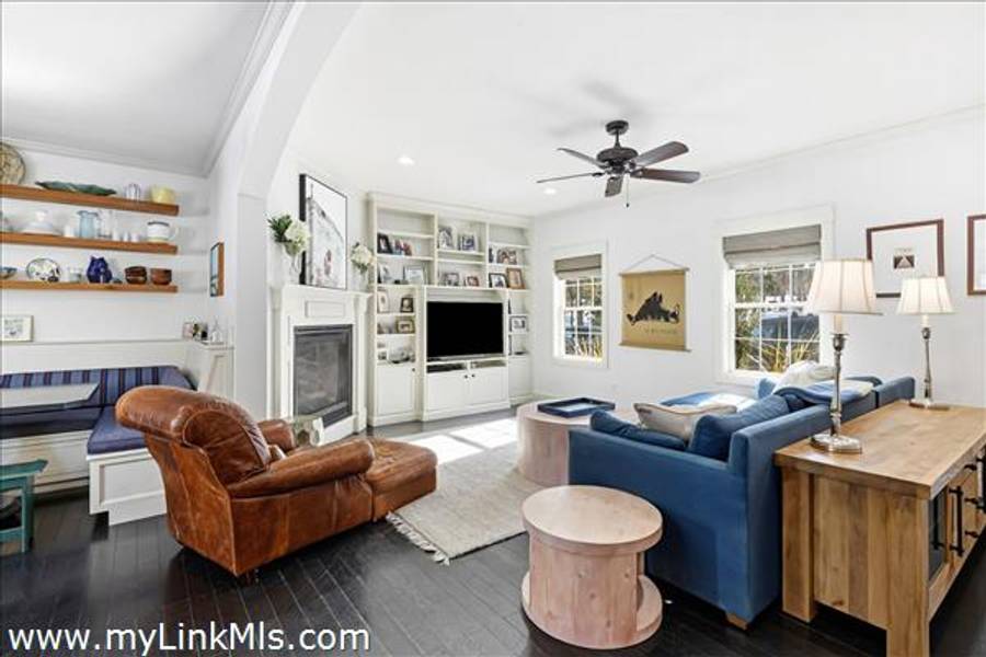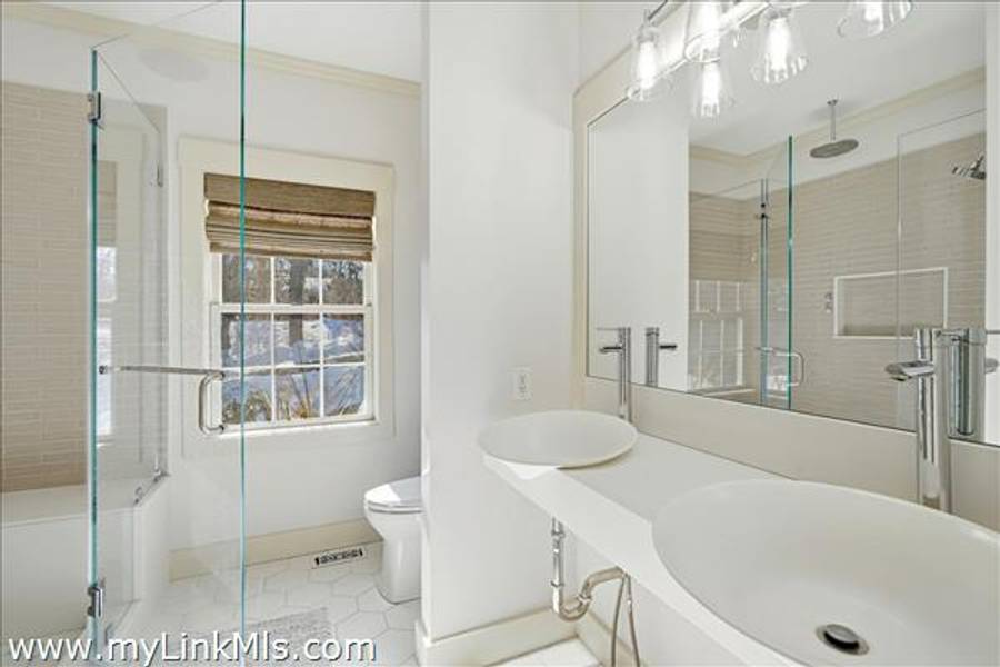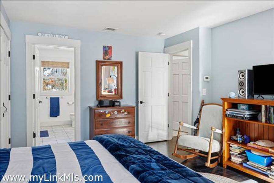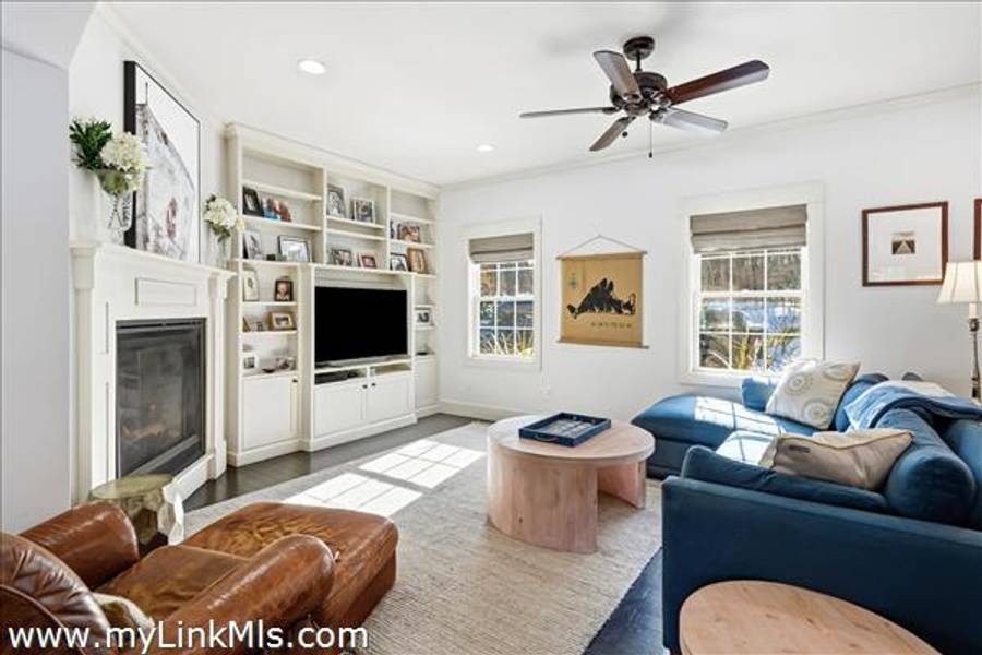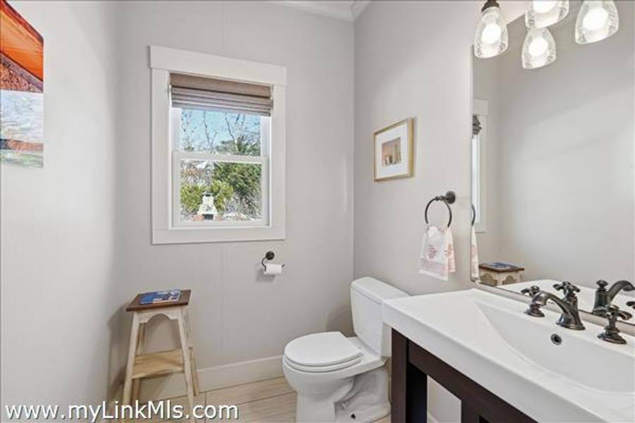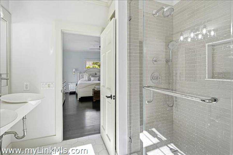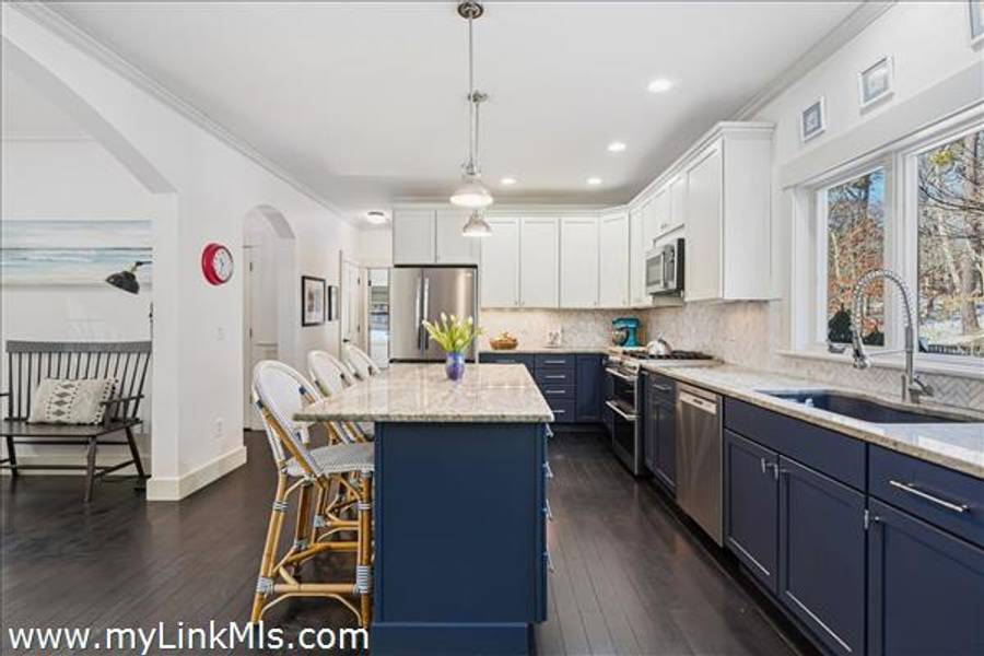 Built in 2016 by Squash Meadow Builders, this exceptional five-bedroom Colonial is ideally situated just moments from the sandy shores of Tashmoo Beach on Vineyard Sound. Thoughtfully designed across four levels of living, the home seamlessly blends timeless architecture with modern comfort. The main level offers an inviting open floor plan with a spacious living room with gas fireplace anchored by a gourmet kitchen with custom built-ins and charming bench seating. The kitchen blends effortlessly into a light-filled sunroom, creating the perfect setting for relaxed coastal living. A generous first floor primary suite provides privacy and convenience. The second level features bedroom suite with a private bath and three well-appointed guest bedrooms share a full bath with recently updated modern tile and vanity. The finished third level offers an expansive bunk room, ideal for extended family or guests. The finished lower level is designed for entertainment and wellness, featuring a media room, home gym, and ample storage. Indoor and outdoor living connect beautifully where the new sunroom opens to a pergola-covered stone patio overlooking a saltwater pool framed by a classic stone wall. The backyard is a private oasis, complete with an outdoor stone fireplace and lush landscaping accented by blue hydrangeas, perennials, and native sea grass. Additional highlights include a one-car garage and solar panels for energy efficiency. A turnkey Martha’s Vineyard retreat offering comfort, style, and effortless summer living near one of the island’s most beloved beaches.