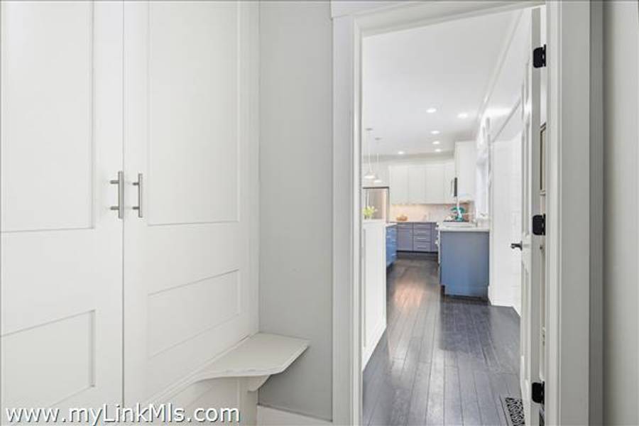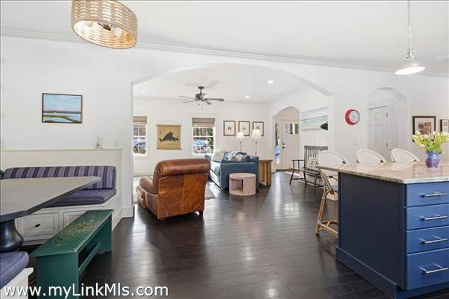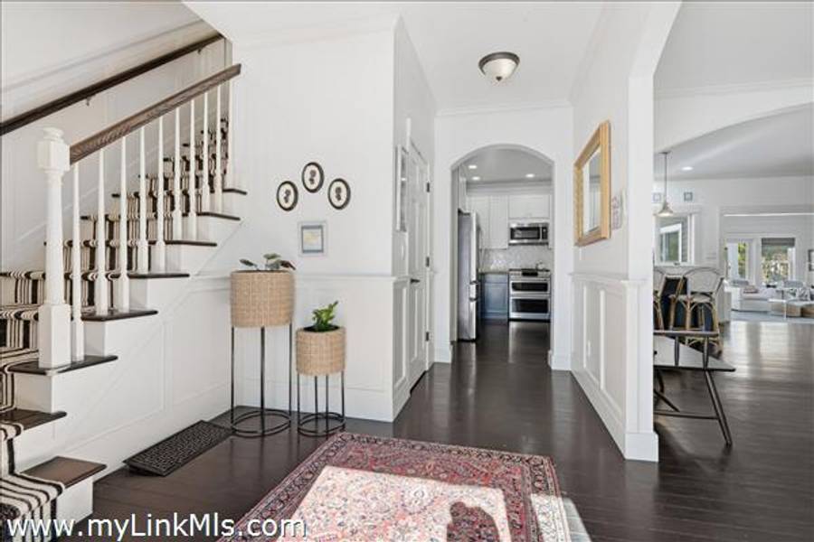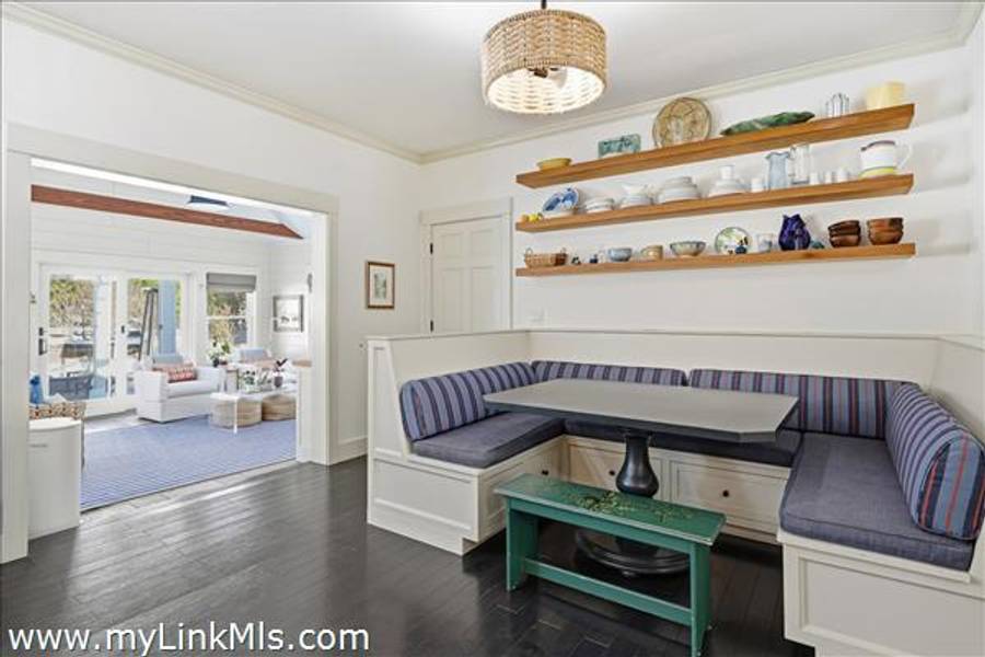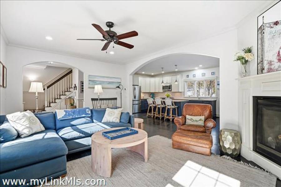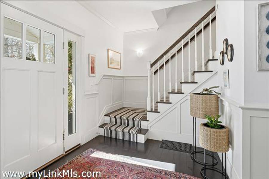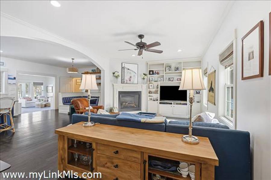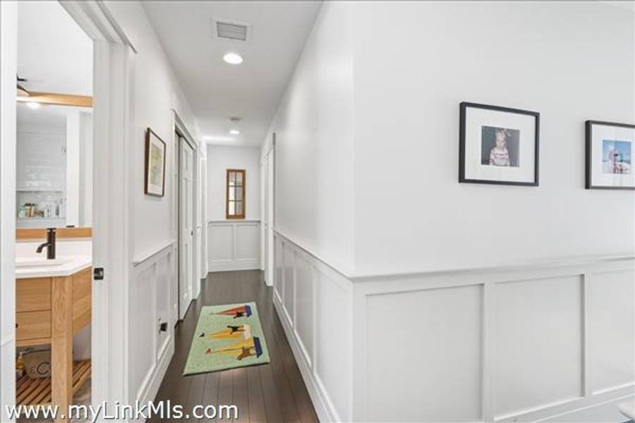 Built in 2016 by Squash Meadow Builders, this exceptional five-bedroom Colonial is ideally situated just moments from the sandy shores of Tashmoo Beach on Vineyard Sound. Thoughtfully designed across four levels of living, the home seamlessly blends timeless architecture with modern comfort. The main level offers an inviting open floor plan with a spacious living room with gas fireplace anchored by a gourmet kitchen with custom built-ins and charming bench seating. The kitchen blends effortlessly into a light-filled sunroom, creating the perfect setting for relaxed coastal living. A generous first floor primary suite provides privacy and convenience. The second level features bedroom suite with a private bath and three well-appointed guest bedrooms share a full bath with recently updated modern tile and vanity. The finished third level offers an expansive bunk room, ideal for extended family or guests. The finished lower level is designed for entertainment and wellness, featuring a media room, home gym, and ample storage. Indoor and outdoor living connect beautifully where the new sunroom opens to a pergola-covered stone patio overlooking a saltwater pool framed by a classic stone wall. The backyard is a private oasis, complete with an outdoor stone fireplace and lush landscaping accented by blue hydrangeas, perennials, and native sea grass. Additional highlights include a one-car garage and solar panels for energy efficiency. A turnkey Martha’s Vineyard retreat offering comfort, style, and effortless summer living near one of the island’s most beloved beaches.