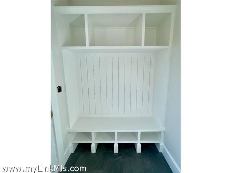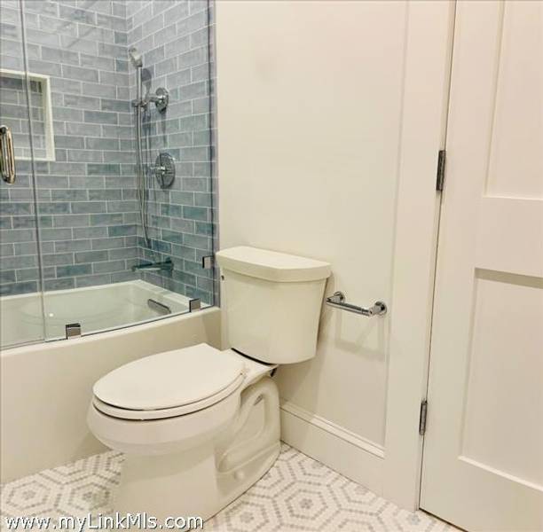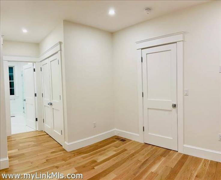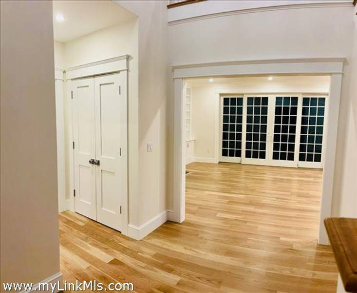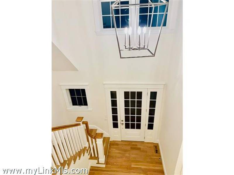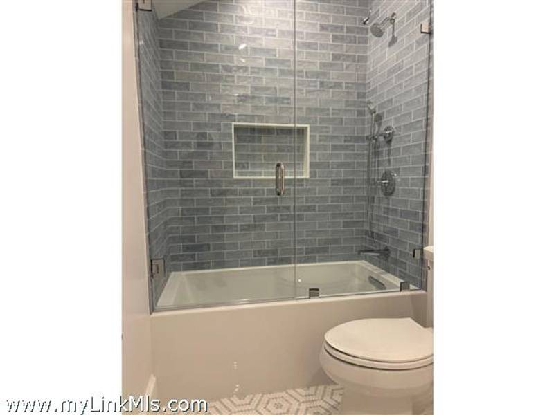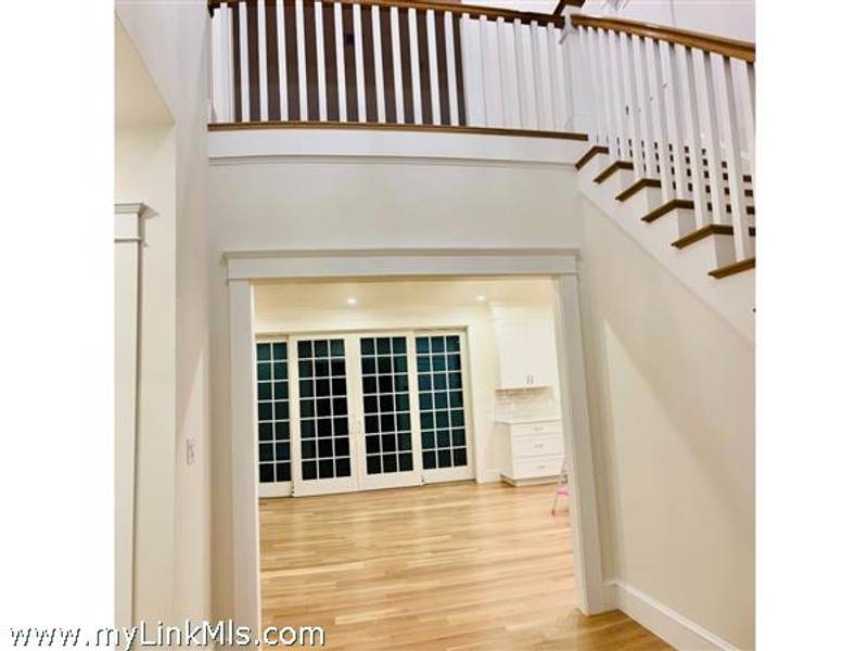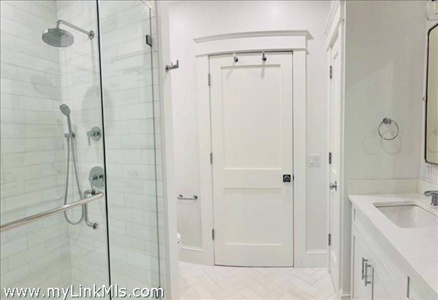 The first floor entry offers an inviting two story foyer which opens to the living room which has a gas fireplace and wall of glass slider doors. Flowing from the living room is the open kitchen area which offers an island with seating for four. The kitchen sports Bosch appliances, an island with a built in drawer microwave, quartz countertops and an easy layout for cooking and entertaining. The kitchen then opens to a separate dining room. A half bath off the living room and a first floor primary bedroom with a luxurious private bath completes the first floor.
