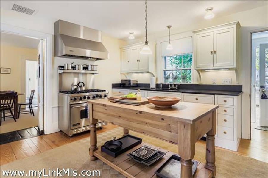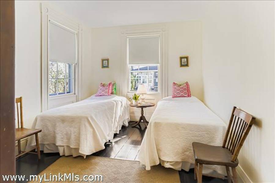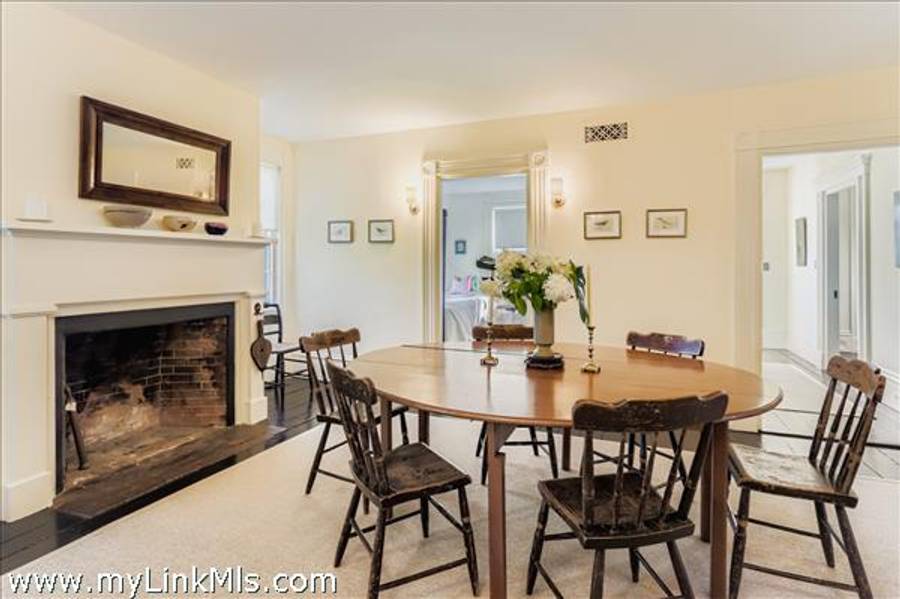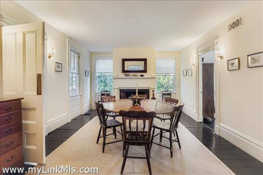 Located in the William Street Historic District, this elegant Greek Revival home, built in 1842, has stood the test of time and has been thoughtfully expanded and renovated in recent years. This five-bedroom, four-bath residence combines historic character with modern comforts. The home features five fireplaces, (one currently hidden behind a plastered wall), a gracious living room, dining room, office, and an inviting kitchen/breakfast room. Additional conveniences include a mudroom, laundry room, central heat and 3 zone air conditioning, and a large screened porch where you’ll find yourself spending more time than anywhere else in the summer time. Two of the five bedrooms are on the first floor, including a private ensuite with a full bath. The home is notable for its unusually large and abundant windows, flooding the south-facing interior with natural light. The winding staircase is a sculptural centerpiece that greets you as you enter through the original front door. Renovations include a new roof over the porch, three modernized bathrooms, and updates throughout the first and second floors, all carefully designed to honor the home’s historic charm. Outside you will find a lawn area and back yard patio that overlook perennial plantings including roses, hydrangeas and dogwood and a white picket fence that creates nice privacy. Plus there is off-street parking for 2 cars. Located just one block from Main Street and two blocks from the Vineyard Haven ferry terminal , this prime location offers easy access to shopping and restaurants and the Tisbury Elementary School. The town tennis courts are just a half-block away, and its a leisurely stroll to the town beach at Owen Park. This is a rare opportunity to own a piece of Vineyard Haven history, where timeless charm meets contemporary comfort.