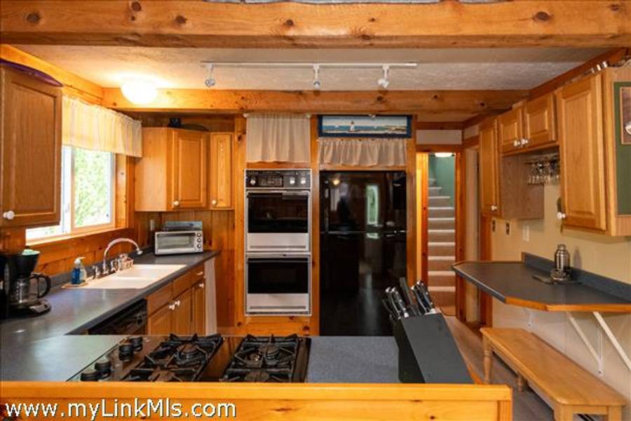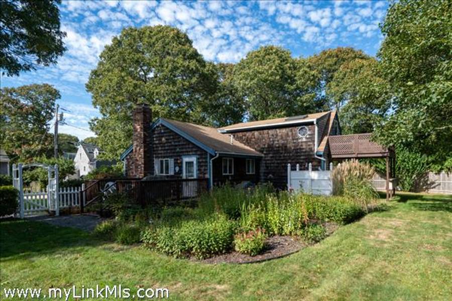 Oak Bluffs: Home Sweet Home Situated on over a quarter acre of beautifully landscaped, level grounds with colorful perennial plantings and mature trees, this sun-filled ranch offers a perfect blend of comfort and charm. The open kitchen, dining, and living areas feature cathedral ceilings, classic vertical knotty pine walls, and a cozy brick fireplace. Enjoy a convenient first-floor bedroom and a spacious second-floor primary bedroom with a private deck. The finished basement provides additional living or hobby space. Updates include a 2017 oil burner and Roth oil tank. An inviting outdoor shower completes this well-maintained home, offered furnished and ready for your personal touches. Located in a quiet residential neighborhood close to all that Oak Bluffs has to offer.
