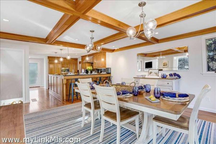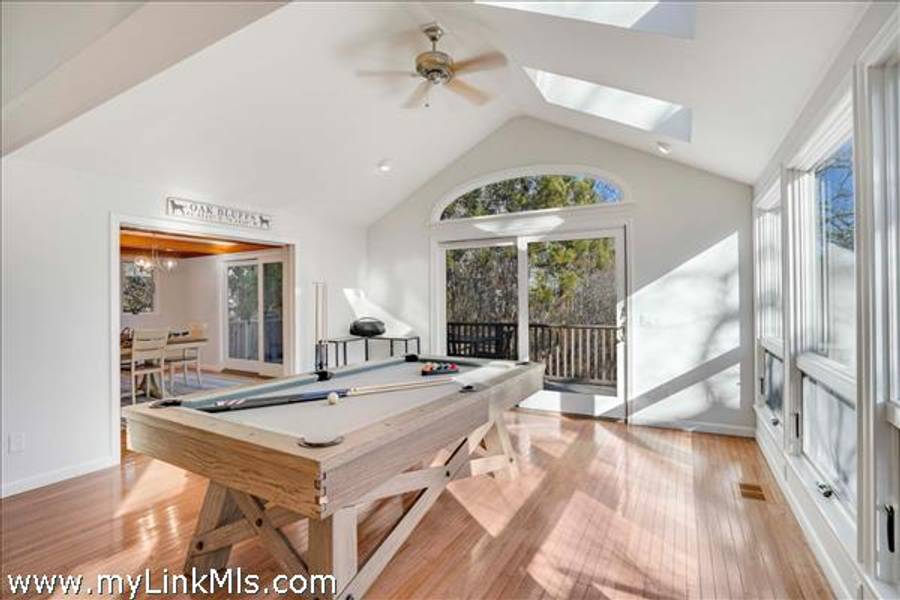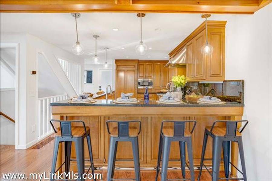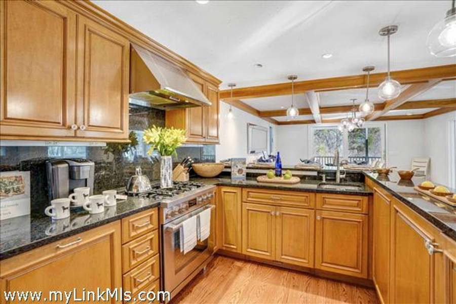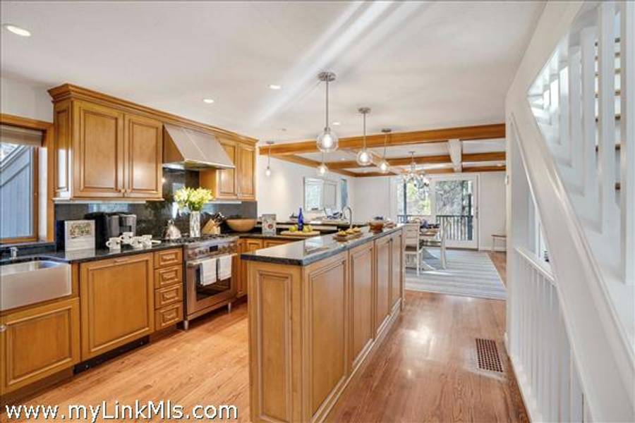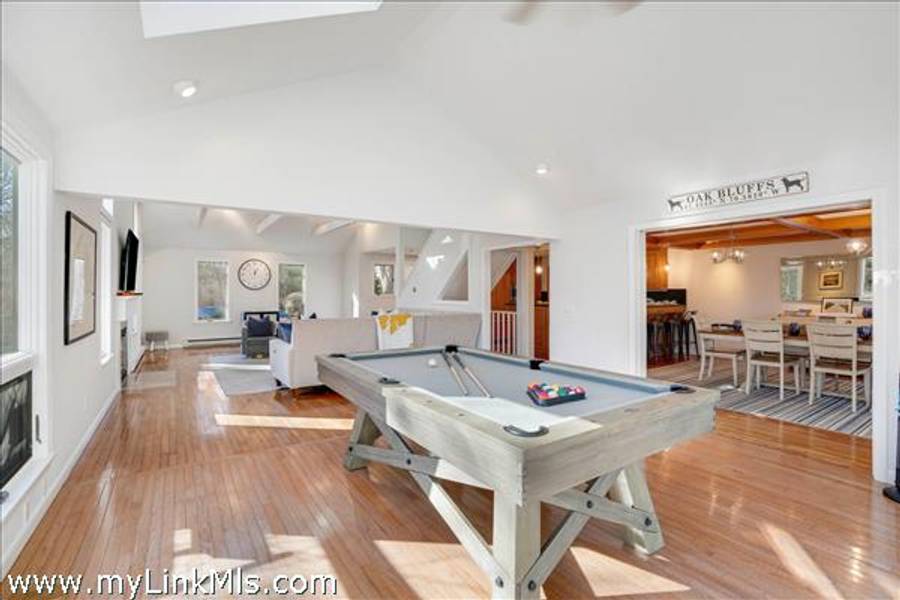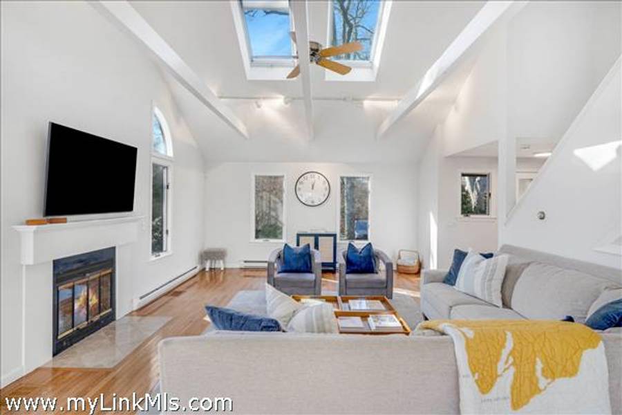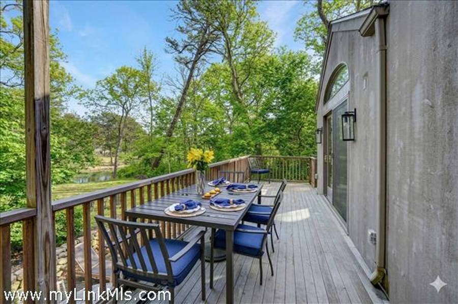 COMING SOON: HIDDEN COVE GEM WITH SERENE POND VIEWS AND COVETED WATER ACCESS. Located in the desirable Hidden Cove enclave, a 65+ acre water-access community with direct access to Sengekontacket Pond and Nantucket Sound, this inviting contemporary home offers privacy, comfort, and high-end finishes throughout. Community amenities include a private boat dock, walking trails, pickleball and tennis, all conveniently located near Oak Bluffs and the Island’s other towns. Designed to accommodate family and guests with ease, the home features a sun-filled living room with vaulted ceilings, a wood-burning fireplace, and floor-to-ceiling windows, skylights, and glass doors leading to the deck. The chef’s kitchen is appointed with gorgeous stone countertops, custom cabinetry, and Dacor® appliances. The second-floor primary suite includes space for a sitting area or office, a private balcony, and a stylish en-suite bath with a soaking tub and glass-enclosed shower. The garden level offers additional bedrooms, baths, and bonus space with a murphy bed for overflow guests. Outside, enjoy the serene pond views from the bluestone terrace with grilling area or from two levels of spacious decks overlooking the private yard. An attached one-car garage provides storage for and island car, beach gear and more. This property is being offered with all furnishings and $78,000+ in 2026 rental income for Summer, 2026. Don’t miss this special move-in-ready offering in one of Oak Bluffs’ most sought-after communities. NOTE: Showings will commence on Tuesday, April 14th.