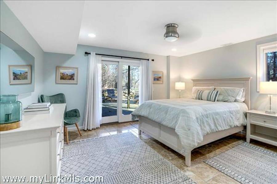The walk-out garden level is comprised of additional bedrooms and baths are thoughtfully tucked away for privacy, along with a bonus living area featuring a California Closets Murphy bed to comfortably accommodate overflow guests.