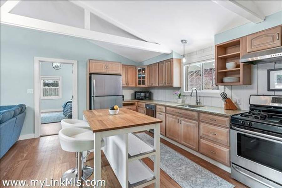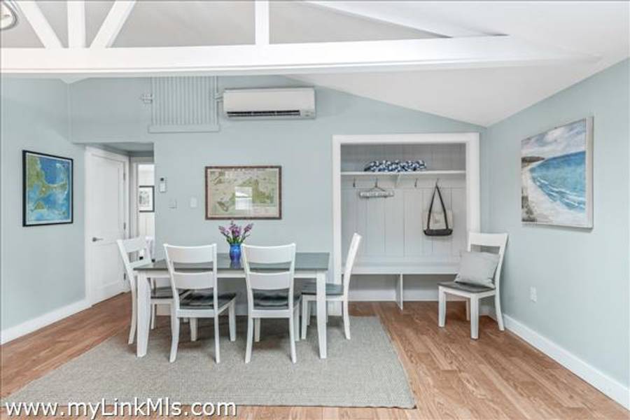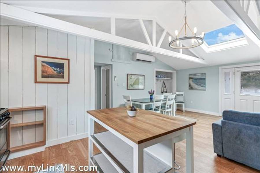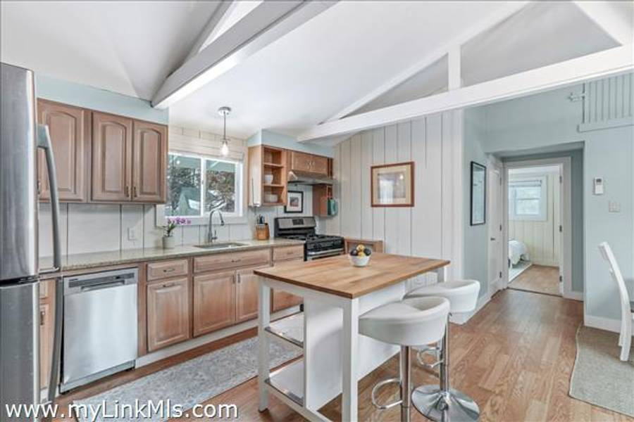 Recently updated Oak Bluffs ranch-style home ideally located near Downtown and Oak Bluffs Harbor. Step inside to discover vaulted ceilings and an airy open floor plan that seamlessly connects the living room, dining area, and a spacious kitchen featuring granite countertops and updated appliances. The private primary suite is thoughtfully positioned off the main living area and offers a full bath with in-suite laundry, plus its own separate exterior entrance, perfect for added privacy or guest flexibility. Two additional guest bedrooms and a full hall bath complete the interior layout. Outdoor living is equally inviting, with a charming front deck featuring built-in bench seating, a stone patio for entertaining, and a convenient storage shed. Recent upgrades include a new roof, updated flooring, and energy-efficient mini-split systems for heating and cooling. Move-in ready and perfectly suited for enjoying the Vineyard lifestyle.