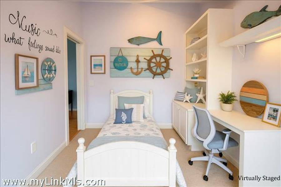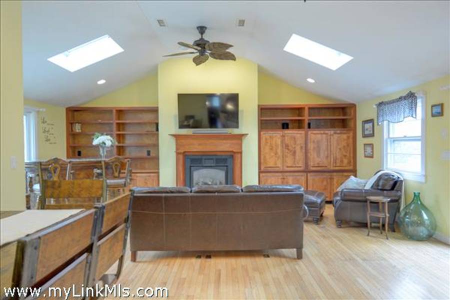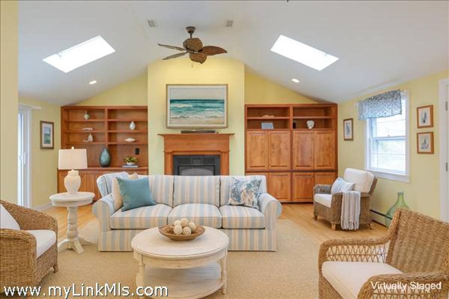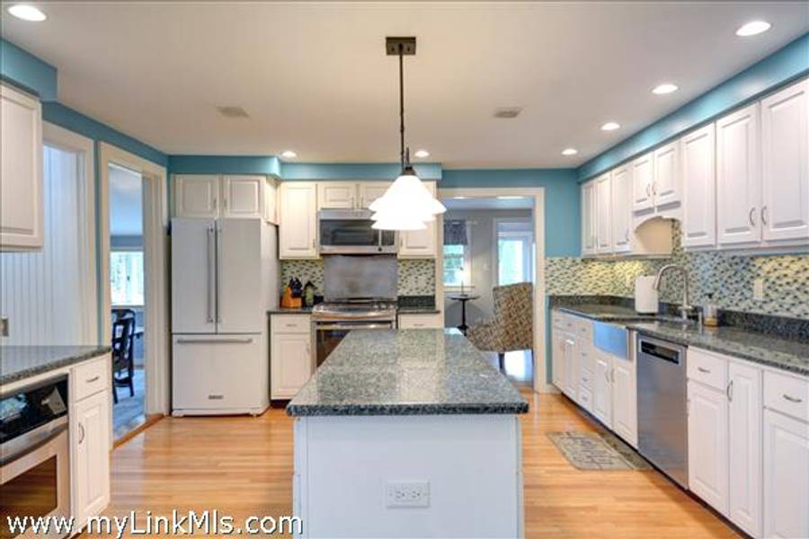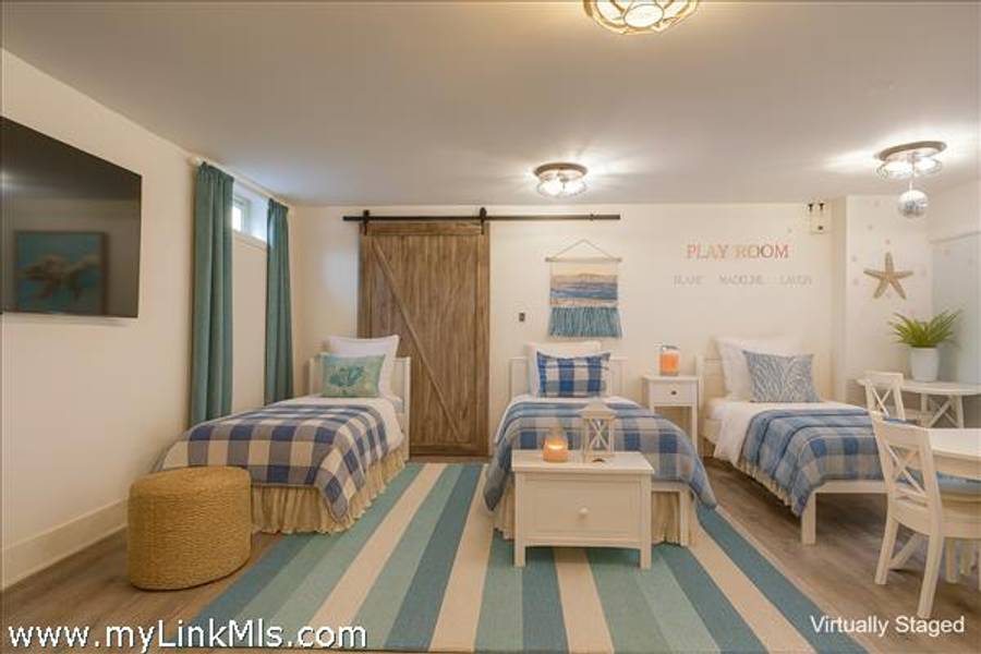 35 Mariner’s Way is sited on nearly a half acre lot and lies within walking distance to Edgartown Village shops, restaurants, galleries, and inns and Sheriff’s Meadow conservation land. This 4 bedroom, 2 ½ bath home features a large living room and formal dining room, chef’s kitchen with two ovens and wine room/pantry, and a spacious family room with a gas fireplace. There are two ensuite bedrooms found on each floor. A colorful children’s rec room is just downstairs which could also function as a media room. Step outside to wide front, back and side yards which provide plenty of room for a pool. Other features include hardwood flooring in most rooms, a two-car garage, patio with hot tub, and a large outdoor shower. This property is connected to both town water and sewer.