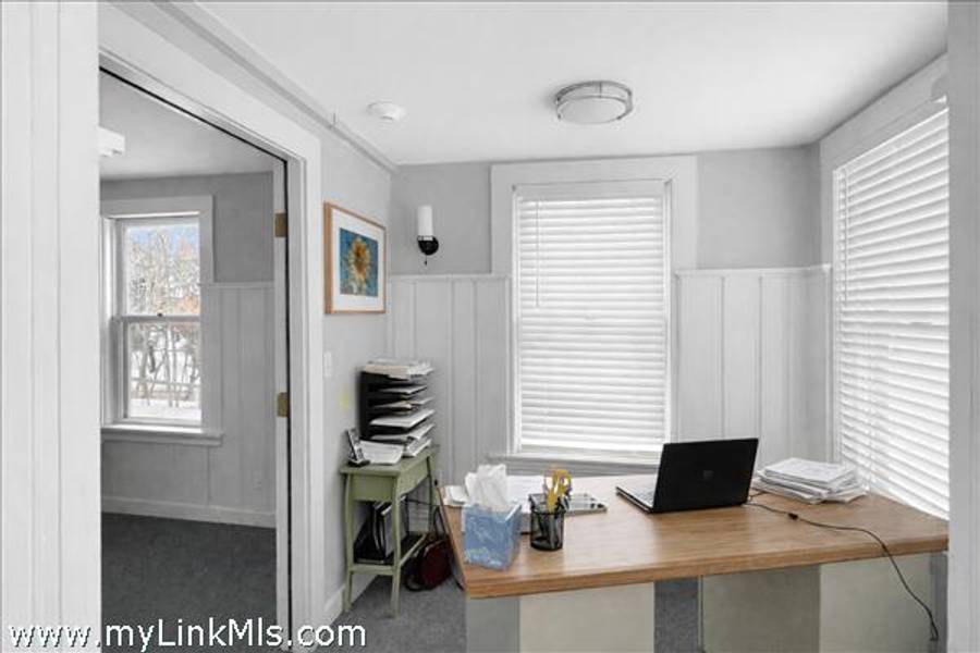 MIXED USE PROPERTY WITH PROFESSIONAL OFFICES AND TWO-BEDROOM APARTMENT – Extensively renovated mixed-use property offering commercial + residential use in a high-visibility location on State Road in Tisbury. This versatile property presents a true live-work opportunity with income-producing potential. The first floor offers four offices including a reception area, 1.5 baths, and a kitchenette, with both front and side entrances, including handicap access. The second floor features a bright and sunny two-bedroom apartment with a full bath, living room, and kitchen—ideal for owner occupancy or rental income. The entire building has been renovated and includes heat and air conditioning throughout, off-street parking for multiple vehicles in the rear, and a yard. Seller financing available, please inquire!