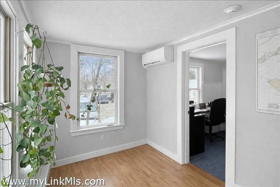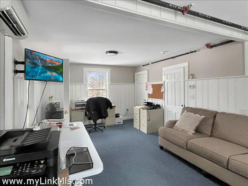 Front door opens to an office and reception area and beyond is a large office area with 1/2 bath. At the side entrance is another large office area with kitchenette and full bath. Mini splits for heating and cooling.