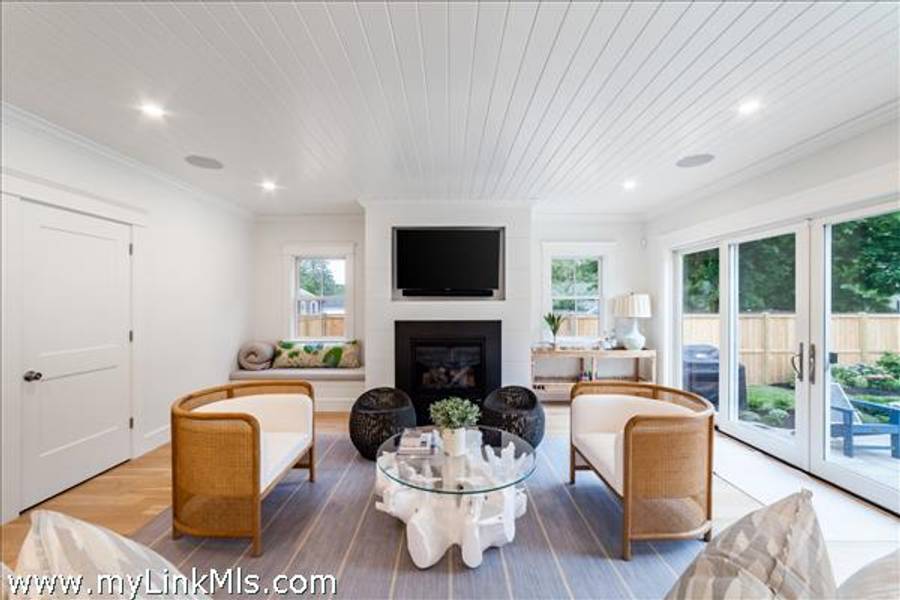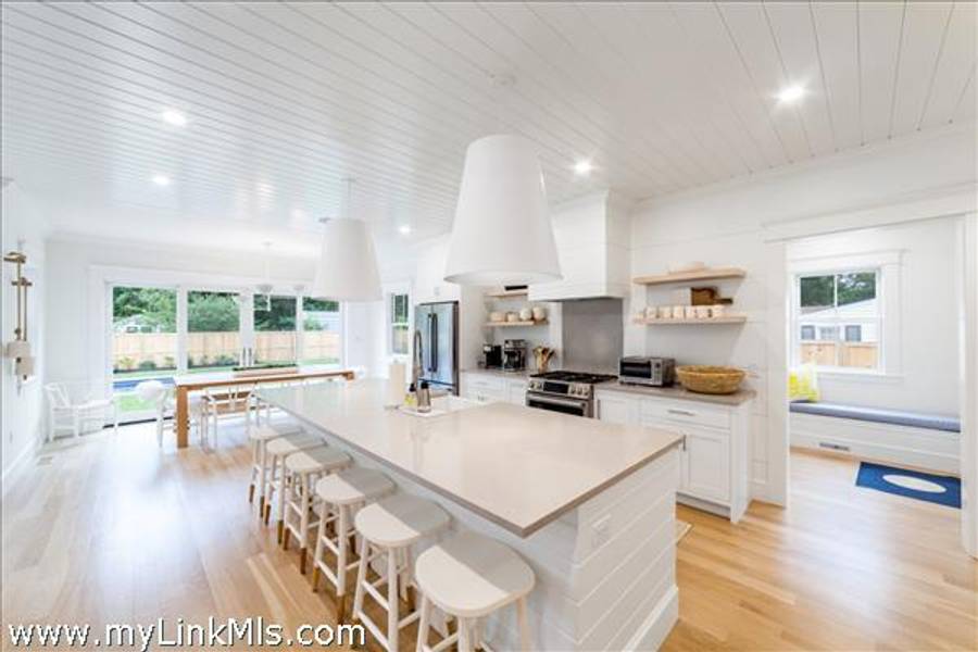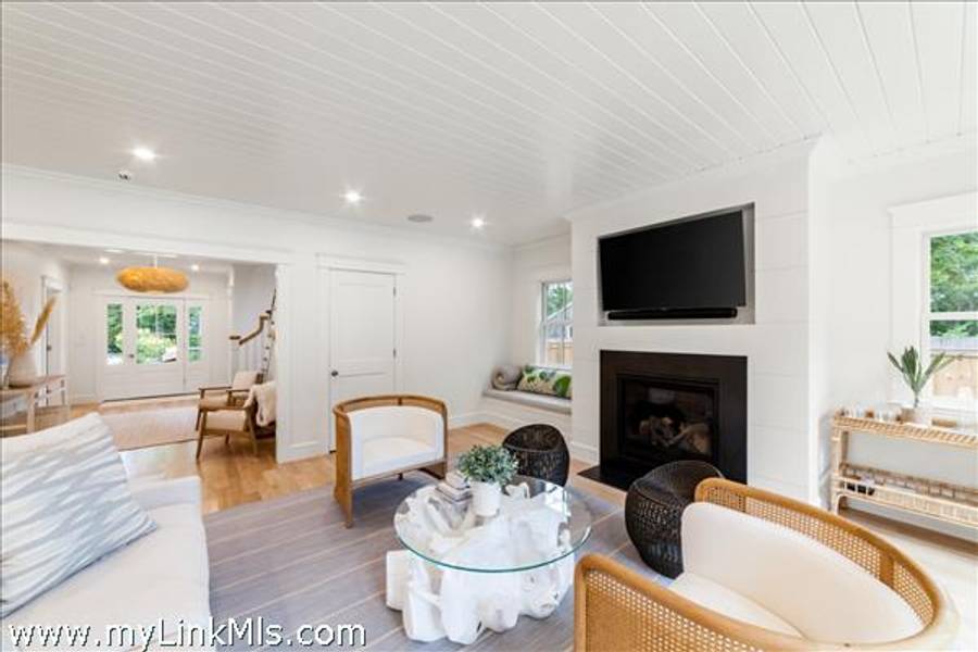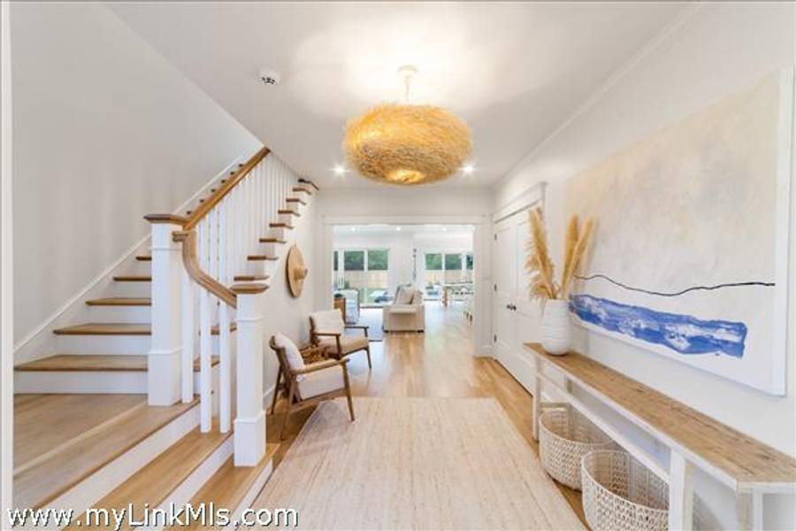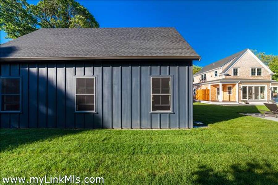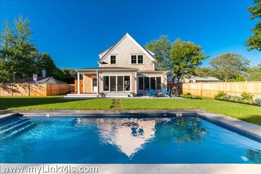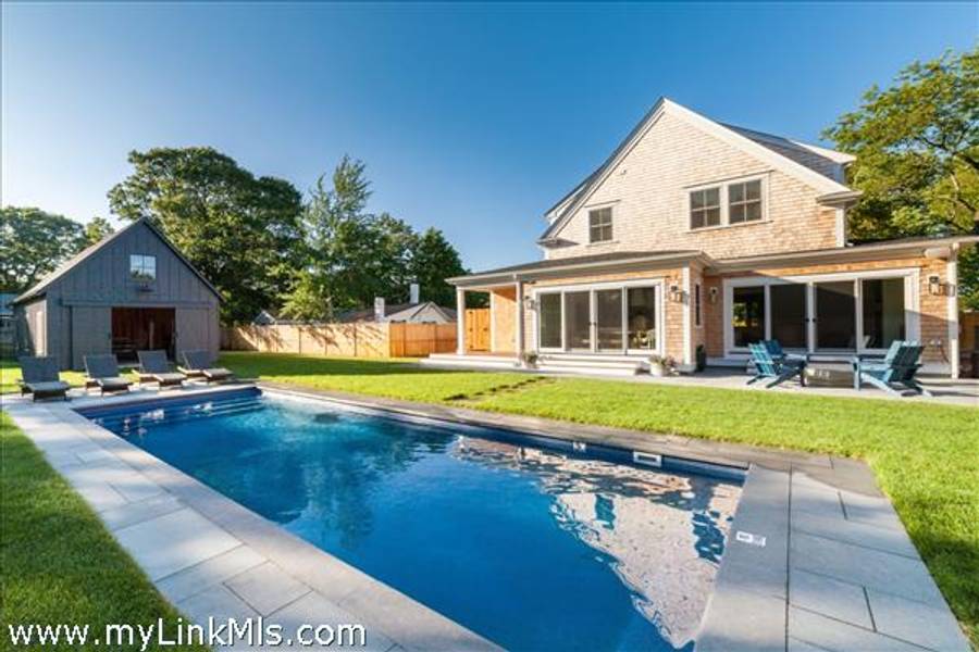 NEWLY BUILT 4-BEDROOM HOME WITH POOL – 10-Minute WALK TO TOWN, Enjoy modern living in this beautifully furnished, recently built 4-bedroom home featuring a heated saltwater pool and a stylish 20' x 30' entertainment barn—all just a short walk to downtown Edgartown.The home offers two floors of bright, elegant living space with 3.5 beautifully designed bathrooms, an open kitchen and family room, a dining area overlooking the pool, and two laundry areas for added convenience. The sleeping arrangements include an upstairs primary suite with a king bed and an ensuite bathroom with both a tub and a shower. Also upstairs are a front bedroom with two twin beds and a middle bedroom with full-size bunk beds and a trundle. The first-floor guest suite provides added privacy with a queen bed and an ensuite bathroom. The home includes two ensuite bathrooms, a shared upstairs bathroom between the secondary bedrooms, and a convenient main-floor powder room. The open family room, complete with a fireplace, 57" TV, and SONOS sound system, flows seamlessly into the fully equipped kitchen, which features a large island and pantry. The dining area seats eight to ten guests and offers a lovely view of the pool. Outside, a private backyard oasis awaits with a heated saltwater pool, outdoor shower, BBQ area, and a spacious entertainment barn outfitted with a ping pong table, cornhole, and relaxing hanging chairs. Offered fully furnished, excluding artwork, and boasting a strong rental history, this home invites you to experience the best of Edgartown living.