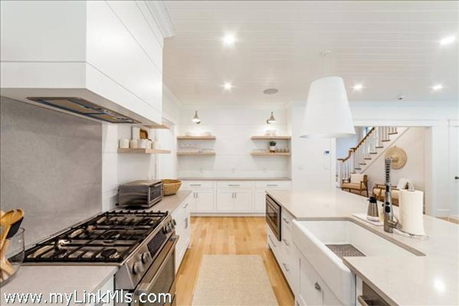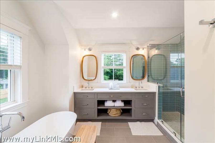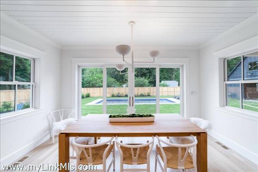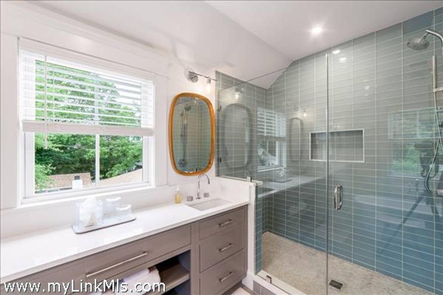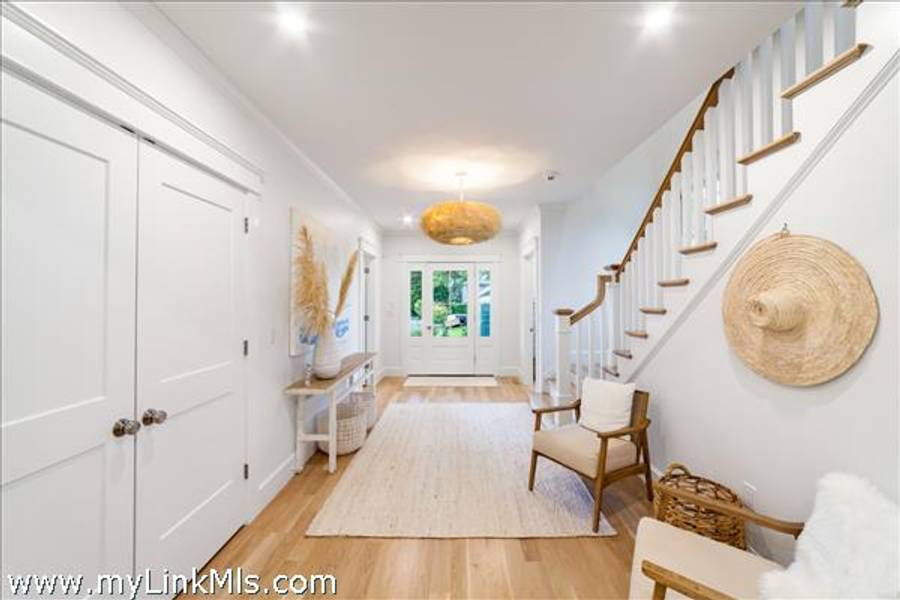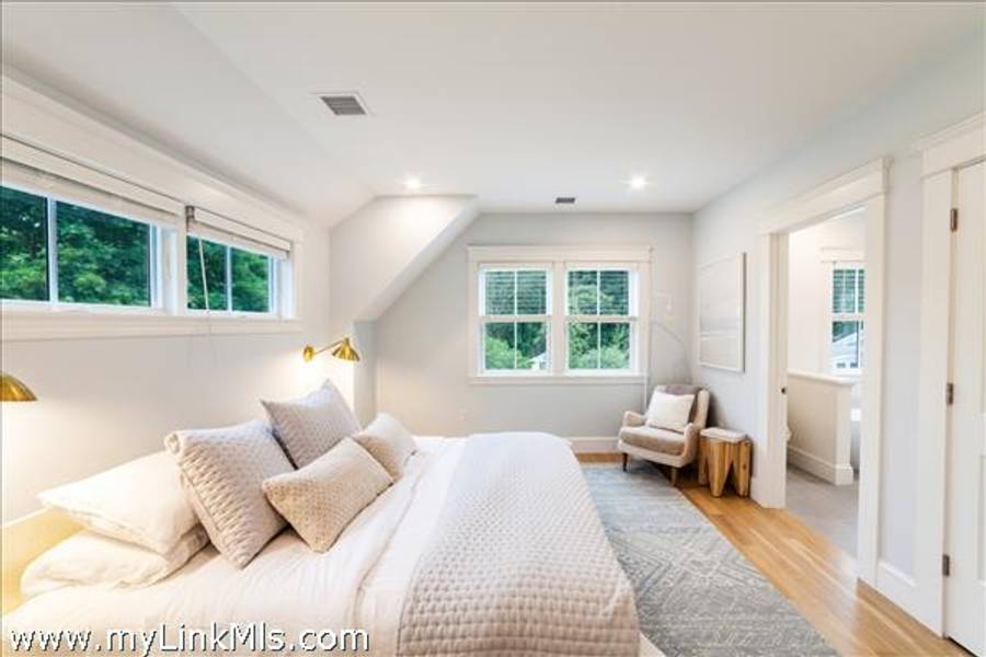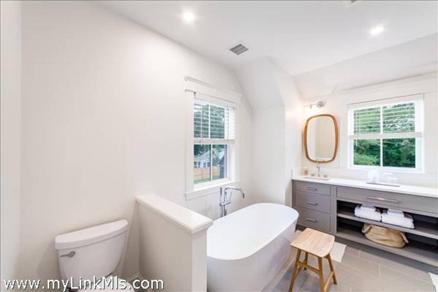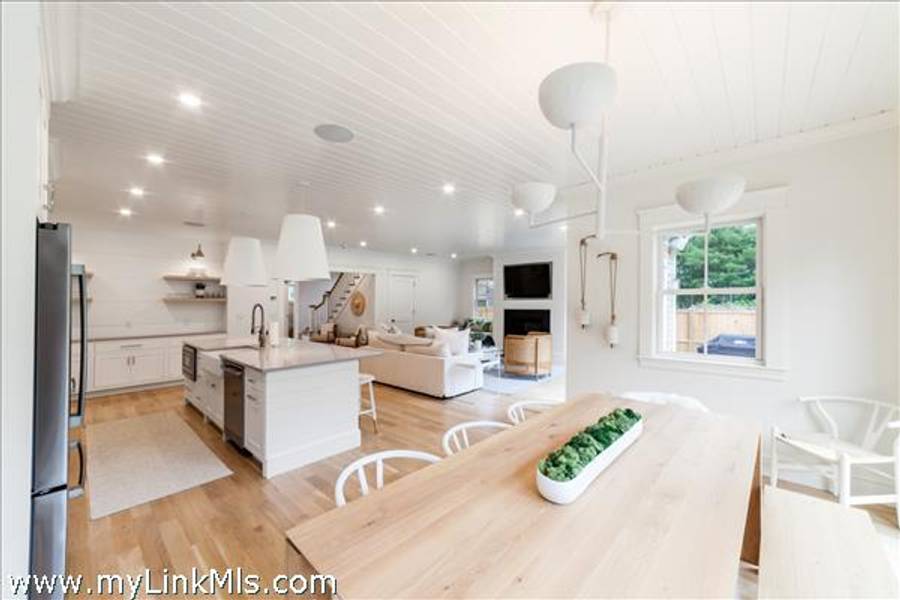 NEWLY BUILT 4-BEDROOM HOME WITH POOL – 10-Minute WALK TO TOWN, Enjoy modern living in this beautifully furnished, recently built 4-bedroom home featuring a heated saltwater pool and a stylish 20' x 30' entertainment barn—all just a short walk to downtown Edgartown.The home offers two floors of bright, elegant living space with 3.5 beautifully designed bathrooms, an open kitchen and family room, a dining area overlooking the pool, and two laundry areas for added convenience. The sleeping arrangements include an upstairs primary suite with a king bed and an ensuite bathroom with both a tub and a shower. Also upstairs are a front bedroom with two twin beds and a middle bedroom with full-size bunk beds and a trundle. The first-floor guest suite provides added privacy with a queen bed and an ensuite bathroom. The home includes two ensuite bathrooms, a shared upstairs bathroom between the secondary bedrooms, and a convenient main-floor powder room. The open family room, complete with a fireplace, 57" TV, and SONOS sound system, flows seamlessly into the fully equipped kitchen, which features a large island and pantry. The dining area seats eight to ten guests and offers a lovely view of the pool. Outside, a private backyard oasis awaits with a heated saltwater pool, outdoor shower, BBQ area, and a spacious entertainment barn outfitted with a ping pong table, cornhole, and relaxing hanging chairs. Offered fully furnished, excluding artwork, and boasting a strong rental history, this home invites you to experience the best of Edgartown living.