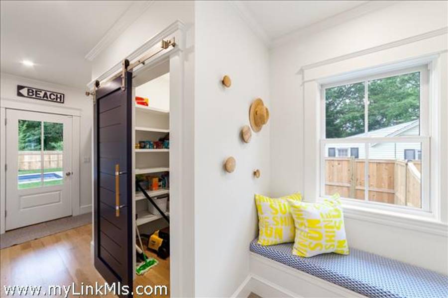 Large foyer entry, powder room, first floor guest bedroom with a private full bathroom, an open kitchen, dining, lounge area with a gas fireplace overlooking the outdoor entertainment area with pool and party barn. A large mudroom with a pantry and 1st floor laundry completes the first floor.