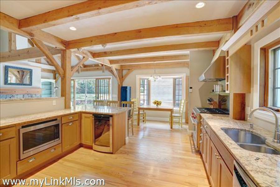 Classic Post & Beam set in Meadow View Farms - This stunning and solidly built four-bedroom home sits on almost an acre of land with endless possibilities and impressive touches throughout. A farmer’s porch stretches the full length of the home offering a warm welcome and a shady spot to relax overlooking the expansive front lawn. The light-filled, open first floor boasts cathedral ceilings, and hand-cut stone propane fireplace, a kitchen featuring granite countertops, Wolf range, and an undercounter wine cooler. A casual dining area at one end of the kitchen, and inviting living room offer the perfect space to entertain. Rounding out the first floor, the primary bedroom has a large walk-in closet, soaking tub, and bay window looking out over the backyard. The second first floor bedroom is currently being used as a TV room. The second level has two sizable ensuite bedrooms with ample closet space and skylights. Highlights of the home include radiant heat, hardwood floors, firepit, large yard and plenty of room for expansion. Even more opportunity for expansion is found in the partially finished lower level which has 1.957 square feet. A future office, media room, or workout area awaits. The two car garage is large and has an additional 576 square feet of space above offering options for additional guest quarters. Meadow View Farms is quiet and private with walking trails and association tennis. The property has mature plantings and is close to both the bike path and over 200 acres of conservation land with hiking trails. Title 5 inspection passed for a 5 bedroom septic. This home is move in ready and is perfect for year-round living. This home would also make a desirable summer vacation retreat.