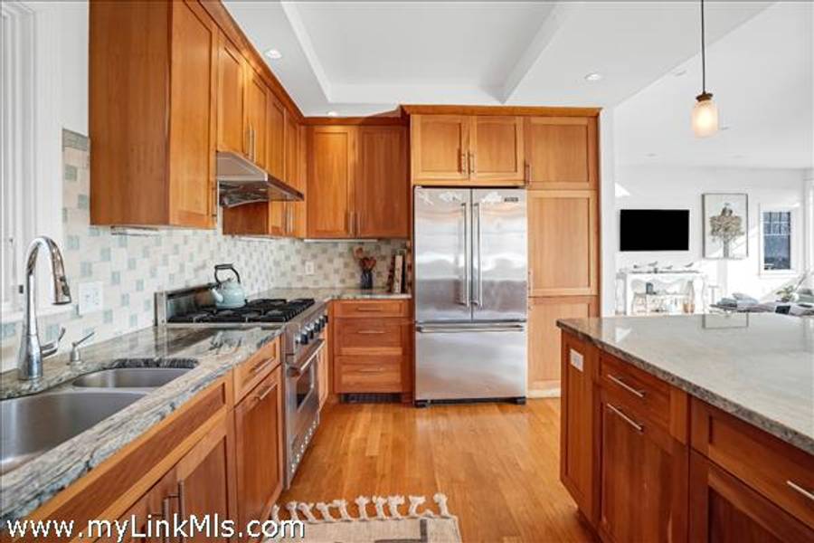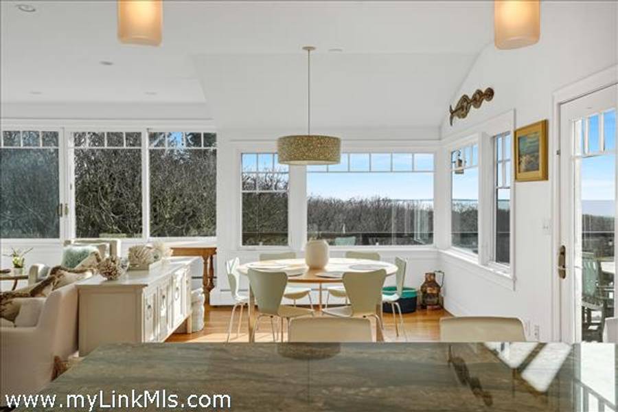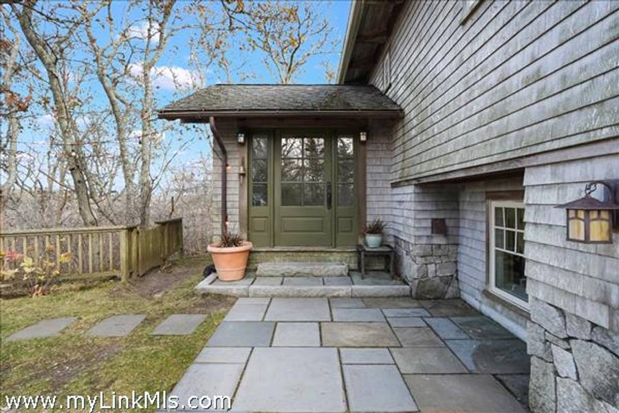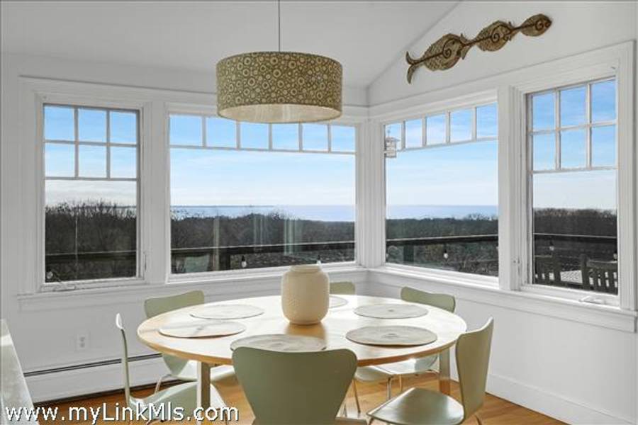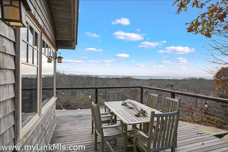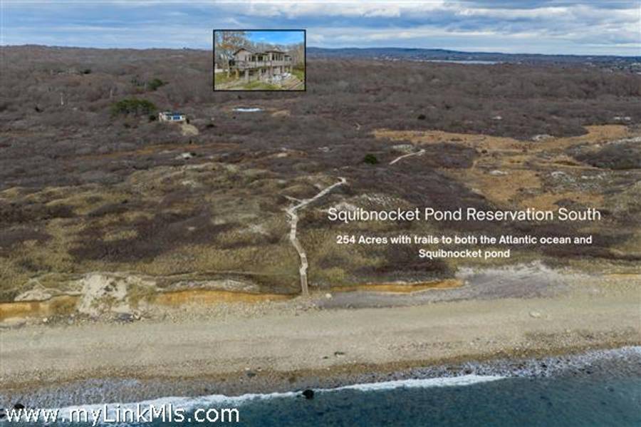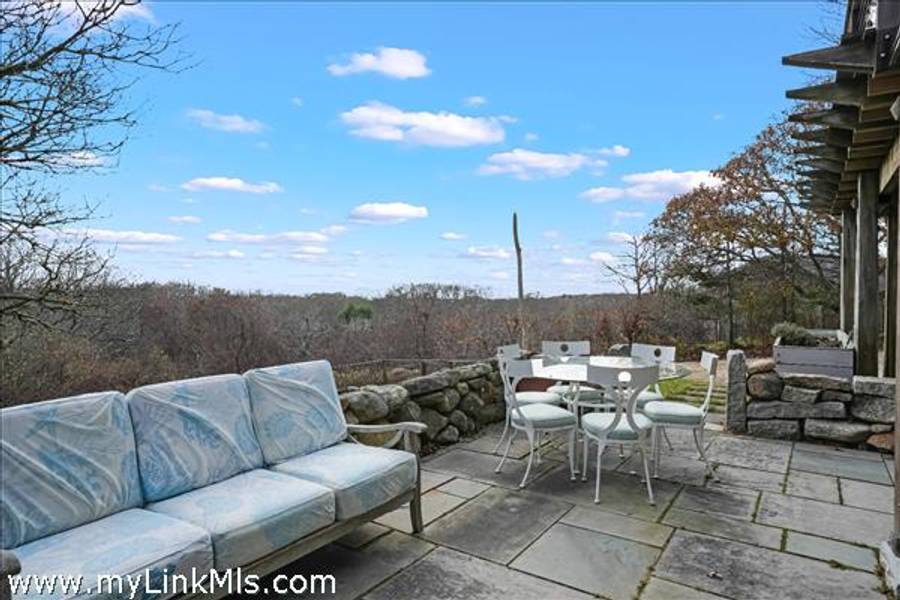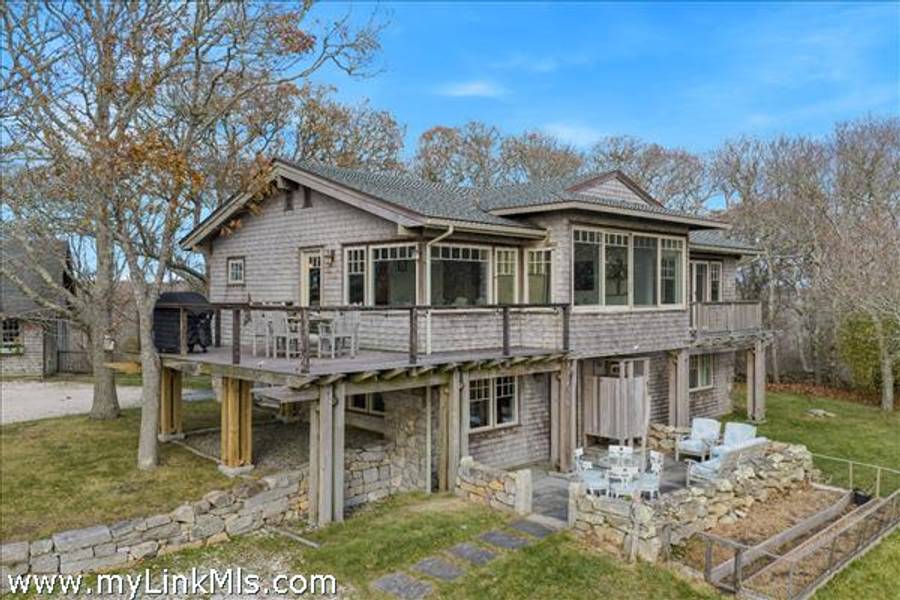 Perched on 2.7 acres in one of Aquinnah’s most breathtaking settings, this beautifully sited coastal retreat offers sweeping views over the Atlantic and Noman’s Land from its elevated position. Designed to embrace the light and scenery, the main level features an open living/dining/kitchen area wrapped in walls of windows—an airy, sun-soaked space where ocean views take center stage. The adjoining wraparound mahogany deck extends the living space outdoors, perfect for morning coffee, sunset dinners, and everything in between. The kitchen is anchored by Viking appliances, granite countertops, and warm wood floors, all overlooking the ocean. The spacious primary bedroom brings those same views right to your bedside, complete with an en-suite bath. The lower level includes two additional bedrooms plus a generous flex room that opens directly to a gorgeous stone patio—an ideal den, overflow guest space, or home office with its own private outdoor area. A full bathroom, laundry room, and utility/storage spaces round out this floor. The grounds are a standout: a manicured lawn, extensive custom stonework, garden beds, and multiple outdoor seating areas create a serene Vineyard setting. Tucked toward the rear of the property, the two-level workshop/studio—equipped with plumbing, electricity, and a wood stove—offers incredible potential for creative or practical use. With appropriate permitting and a future septic upgrade, buyers could explore the possibility of converting the studio into an accessory dwelling unit. Directly across the street, the new Land Bank/Sheriff’s Meadow Squibnocket Pond Reservation provides access to one of the Island’s most spectacular stretches of shoreline. A 15–20 minute walk down the trail leads you to Squibnocket Pond and a pristine beach that feels like a private escape. With its elevated ocean views, thoughtful layout, quality finishes, and incomparable proximity to conservation lands and water access, this is a rare opportunity to own a move-in-ready Aquinnah retreat that truly feels like vacation every day.