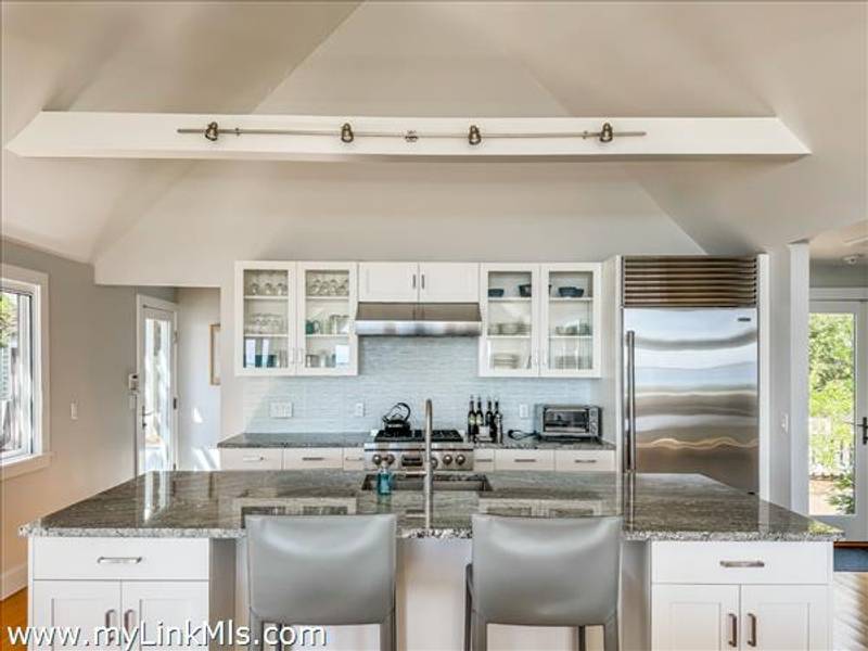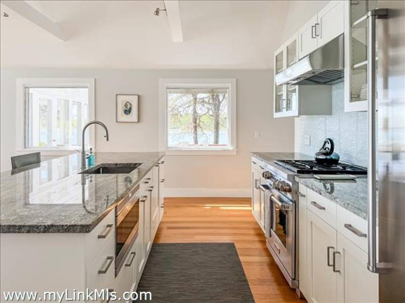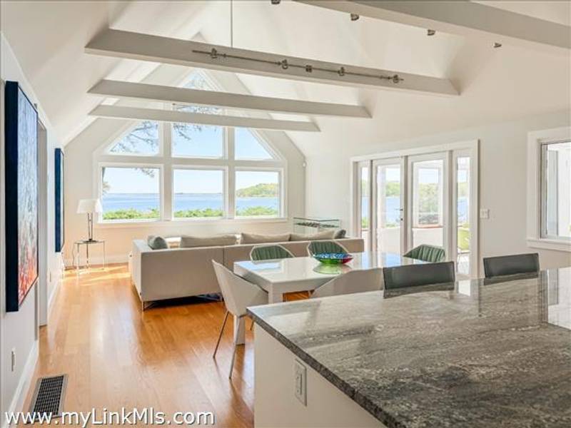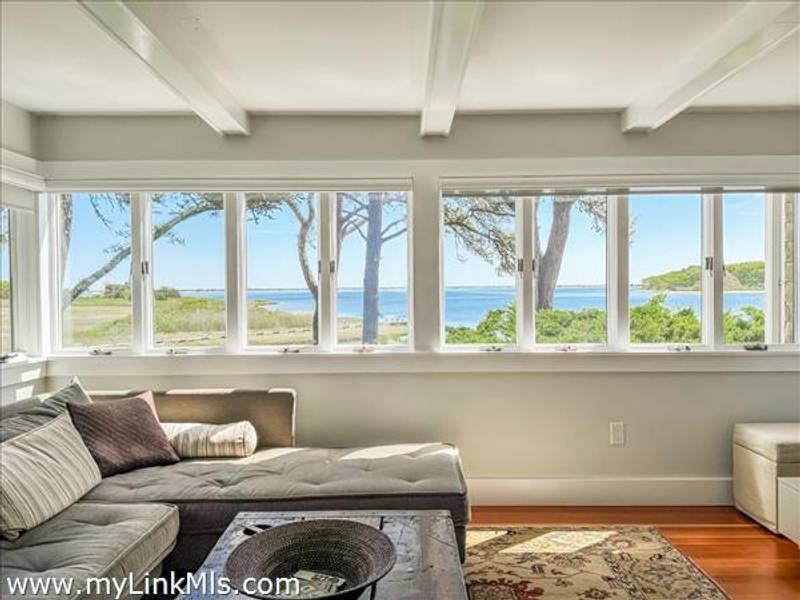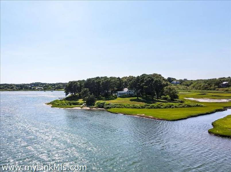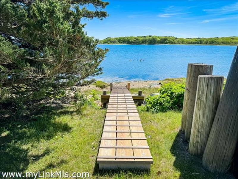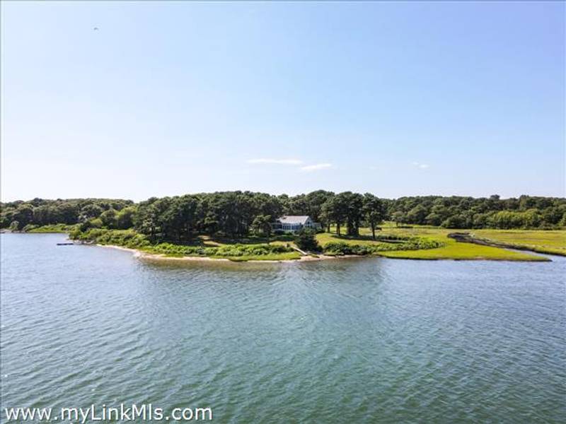 Breathtaking property at the tip of a prominent peninsula on Sengekontacket Pond's western shoreline. Set beautifully at high elevation above the shore, this charming home and guest cottage includes jaw-dropping views of the pond, barrier dunes and Nantucket Sound. Direct from the property take your whaler or other watercraft out into the sound and beyond for endless recreational pursuits. Aside from boating, the swimming and clamming in the immediate waters are sublime. Expansive lawns slope down to the water on three sides of the residence - one of the most enchanting settings on the waterfront on Martha's Vineyard.