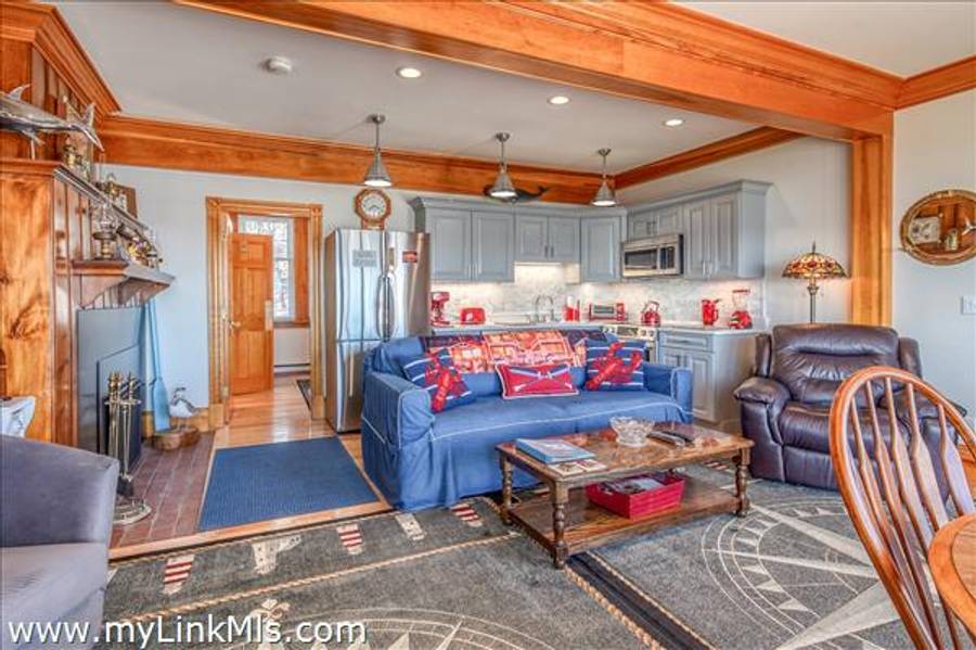 East Chop Water Front Luxury Condominium -- This 1-bedroom, waterfront condominium, "Cottage City", features outstanding water views of the harbor and sound beyond, a cozy propane fireplace and is just steps from the tennis club, beaches, restaurants, ferries to the mainland and downtown. In pristine condition, this 1st-floor unit includes new kitchen with Bosch appliances, living room with fireplace, dining area and a private covered front porch over-looking the water. The unit has electric baseboard heat plus mini-split heat/AC. Common areas include private outdoor shower with dressing area, and outdoor patio/grill area. Condominium owners have first option to rent a slip at the 106 ft dock for 8 slips and a 40’ T at the end for a 9th boat. Each condo unit includes a designated parking space for one vehicle. Built in 1952, and operated as East Chop Harborfront Apartments since then, the property has had extensive top to bottom renovations including new wiring, plumbing, insulation, heating/AC, exterior security cameras and dredged dockage. Features include crown molding and attention to detail, new kitchen and bathroom with Italian Carrara subway tile, classic and timeless, as well as beautifully landscaped grounds. Laundry service available. Occupancy available beginning Nov. 1st, 2025. New condominium pending buyer approval of final condominium documents. New hot water tank 2023. House keeping available at owners discretion. If owner desires, the propane fireplace may require a new propane tank exclusively for the fireplace independent of generator, inspection and approval of town and fire department, prior to operation. CO detector required. Available for showing with 24-hour notice until June 15th, thereafter Saturday's 10-12.