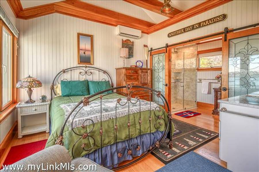 Open floor plan includes living room, dining area and kitchen, plus bedroom and a full bathroom. Covered deck off the living room overlooking the harbor and the sound, is the perfect place to entertain while watching the waterfront activity unfold before you at breakfast, lunch or dinner. Stargaze in the evenings and see the fireworks in August from your porch.