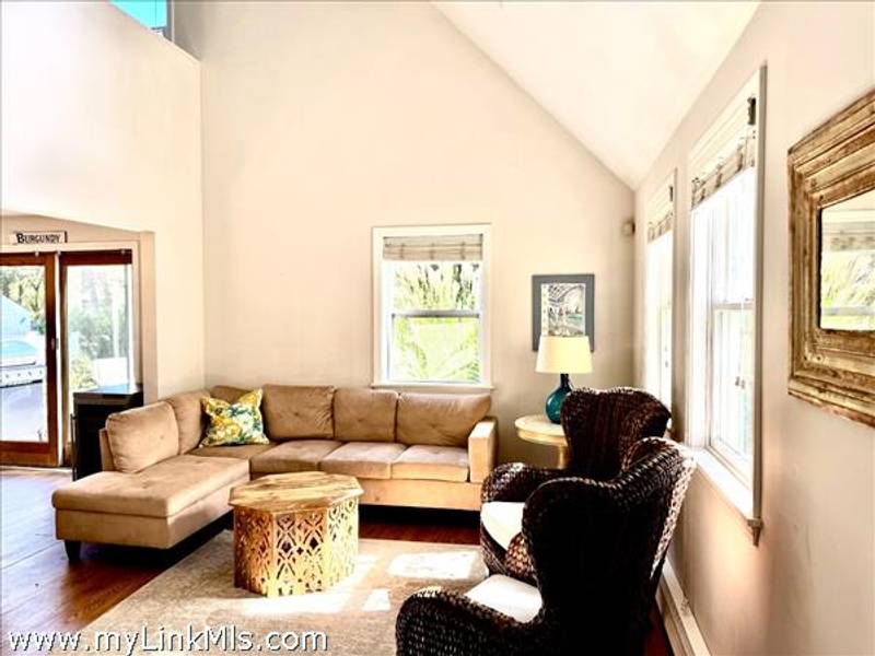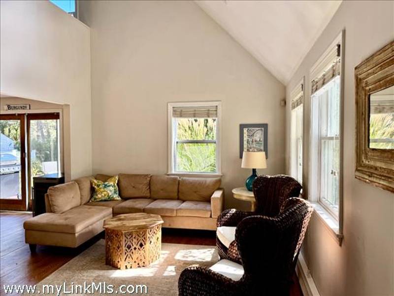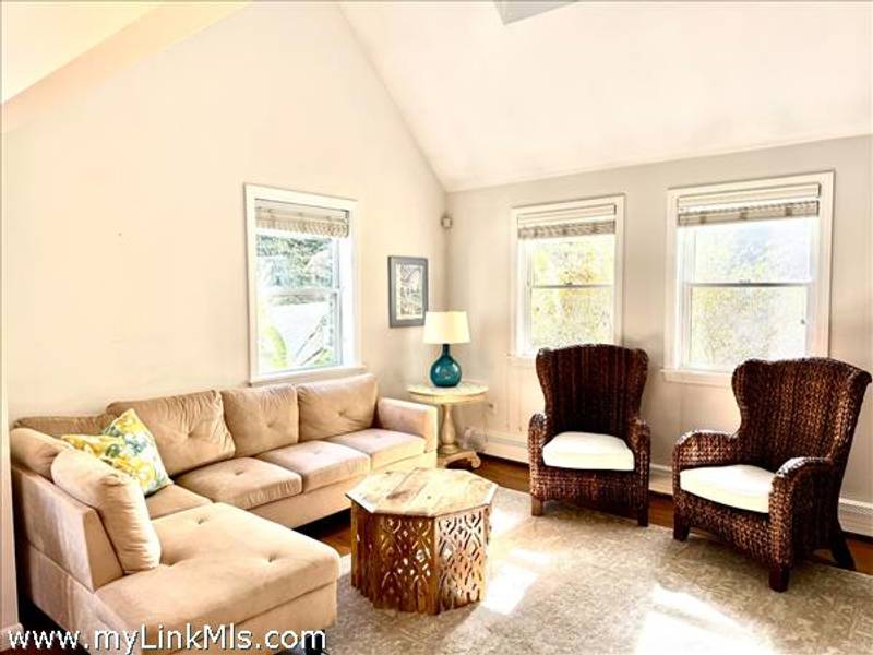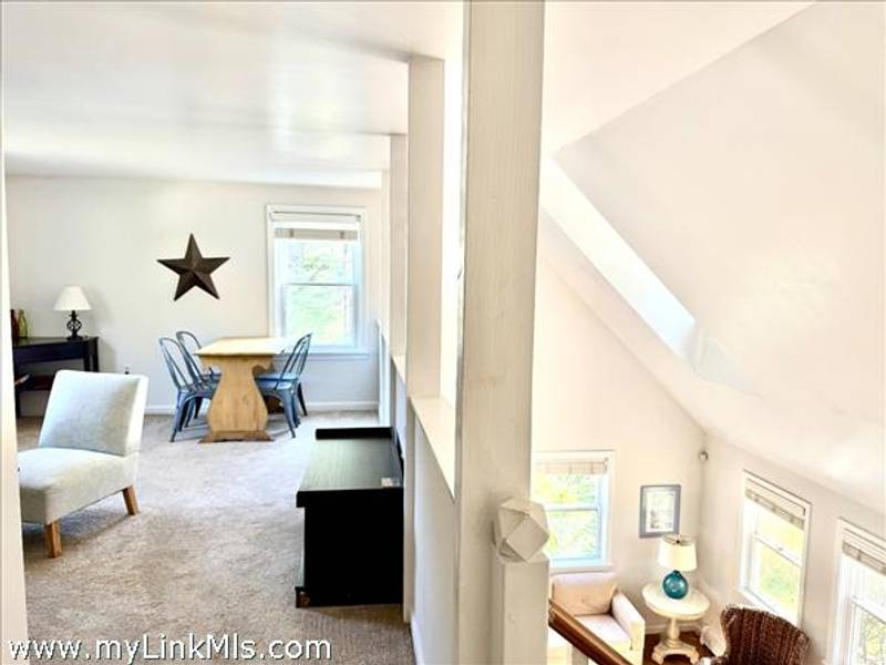 The main bedroom is located on the second floor along with a full bath and a sitting area that overlooks the living room.