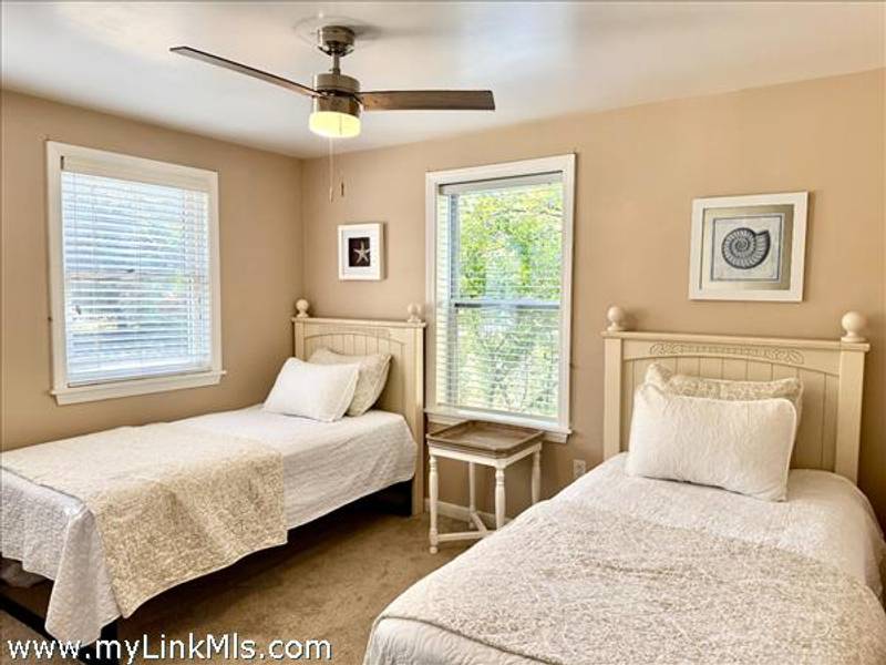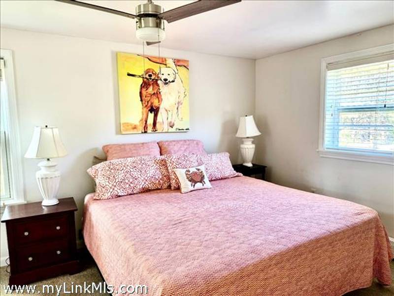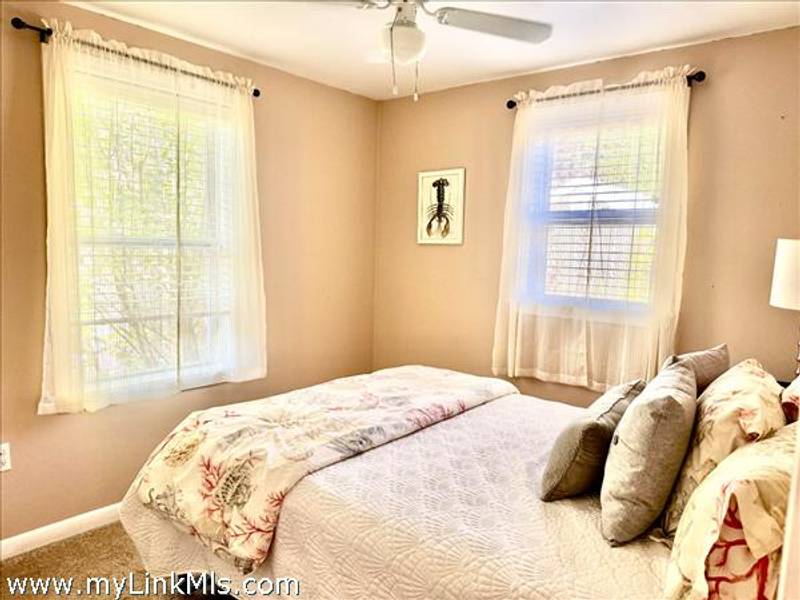 There are two bedrooms on the first floor with a full bath. The living room has a cathedral ceiling which provides a spacious feeling.