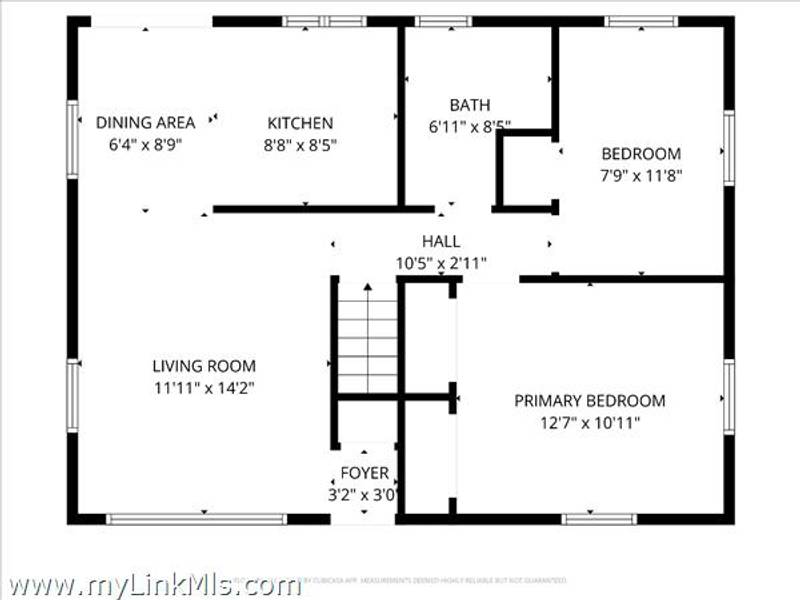 Living room, dining/kitchen, hallway, full bathroom with tub/shower, 2 bedrooms.