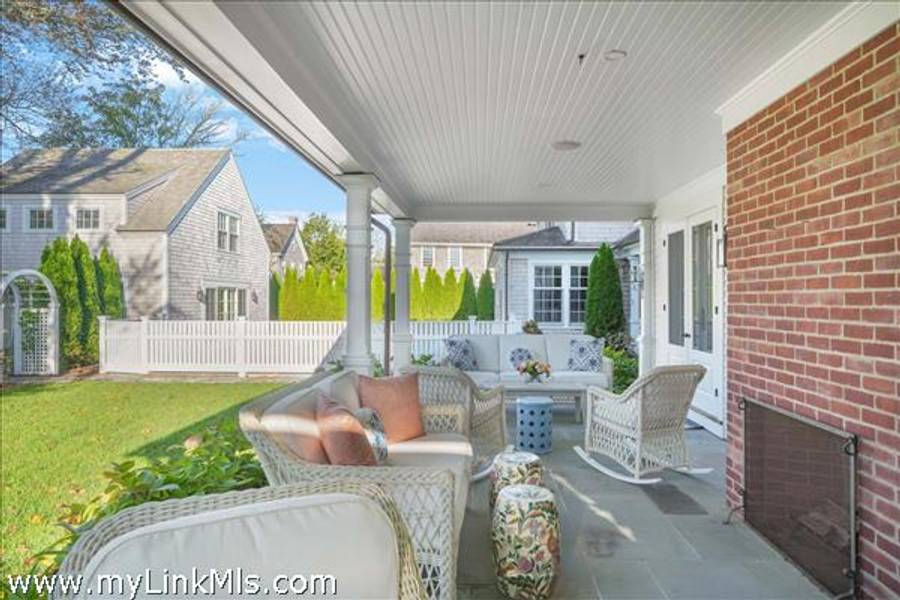 The historic Captain Ellsworth West House is a landmark property in the very heart of downtown Edgartown, offering an extraordinary combination of history, charm, and modern luxury. Just steps from Edgartown’s celebrated restaurants, galleries, shops, and harbor, this rare estate provides both the convenience of in-town living and the privacy of a graciously designed compound. The main residence spans more than 5,800 square feet and has been beautifully renovated over the years, blending contemporary updates with the timeless character of its historic architecture. On the first floor, an updated kitchen with a spacious pantry overlooks the pool, and flows into a welcoming living room anchored by a fireplace. The main living areas also include a more formal dining room with its own fireplace, and an elegant living room where French doors open to a covered porch. From here, sweeping views of the lush lawn and rows of hydrangeas create a quintessential Vineyard setting. Two staircases lead to the second floor, where the primary suite serves as a private retreat, complete with walk-in closets, an additional wardrobe closet, and a spa-like bath featuring a soaking tub. Two additional bedroom suites, each with private baths, along with a comfortable office space, complete this level. A third floor provides further accommodations with an additional bedroom and full bath, ideal for guests. The lower level is equally impressive, featuring a wine cellar, media room, guest bedroom, full bath, and laundry room. The property extends well beyond the main residence. A carriage house with a one-car garage provides additional storage and guest quarters and an expansive driveway accommodates ample parking rare for Downtown. The pool and spa form the centerpiece of the outdoor living space, surrounded by newly installed stone hardscape that adds elegance and durability. Adjacent to the pool, a thoughtfully updated cabana offers a kitchenette and half bath. Above the cabana, a recently renovated guest suite features a spacious bedroom and full tile bath, giving visitors a private and comfortable retreat. A remarkable property that embodies the very best of Edgartown living.