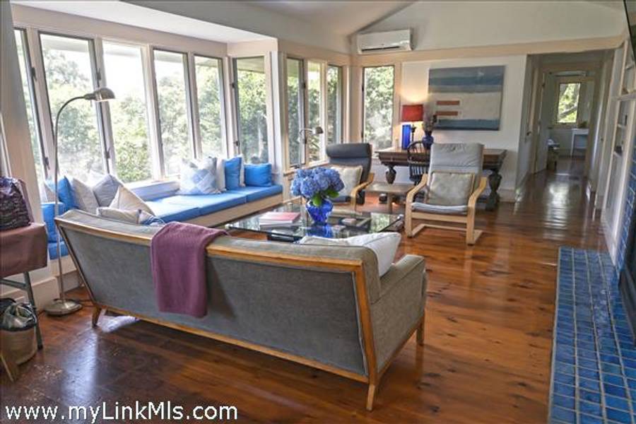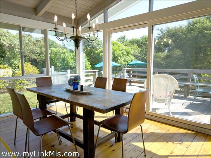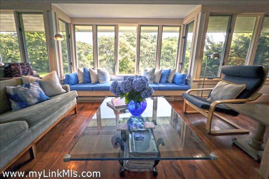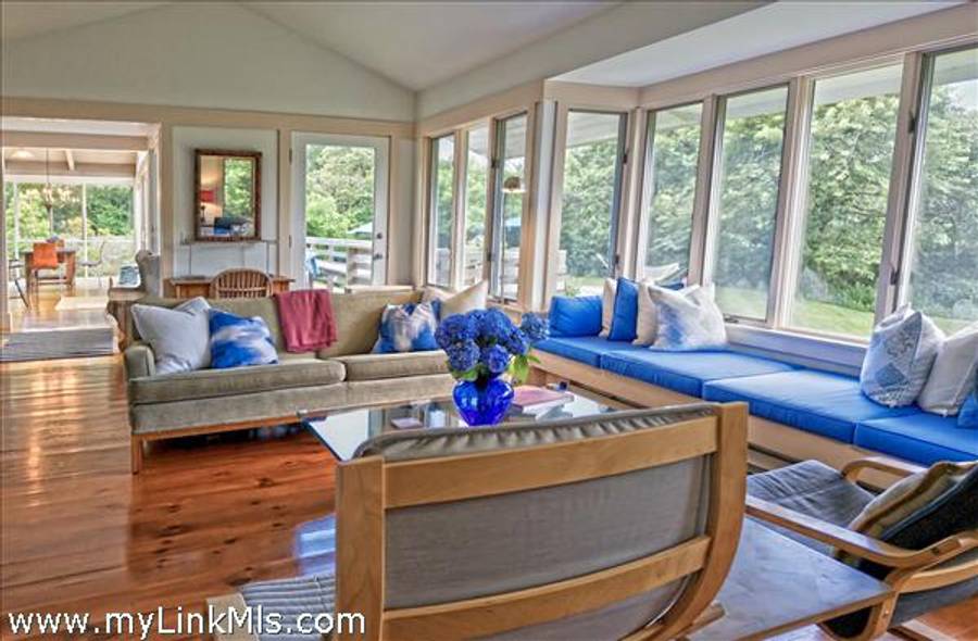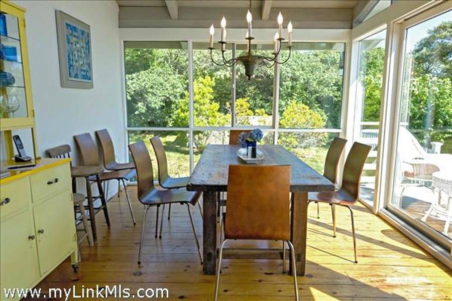 Step into timeless mid-century modern style and comfort in this single-level, 4-bedroom, 3-bathroom home located in the heart of Chilmark. This home features an open layout with large glass panel doors that lead to a sun-drenched deck, heated in-ground pool, and grassy lawn. This home is offered completely furnished with a well-equipped kitchen, large living room with wood burning fireplace, dining area overlooking the pool and yard, air conditioning, and cable television and internet and a distant peek at the ocean. The home sleeps 8 comfortably, with two ensuite bedrooms (king and queen), an additional queen room, and a twin room perfect for guests or little ones. Outdoors you will find an inground, 4-foot-deep heated pool including pool side furniture, umbrellas, hammock, outdoor shower, and a gas barbecue. Step across the road to the Land Bank’s Fulling Mill Preserve and theOcean View Farm Preserve with stunning Atlantic views and 20+ acres of walking trails. As a Chilmark resident you will enjoy the beautiful beaches of Lucy Vincent and Squibnocket. This property has a strong rental history with rates ranging to $13,000 weekly. Easy to show, please call listing broker.