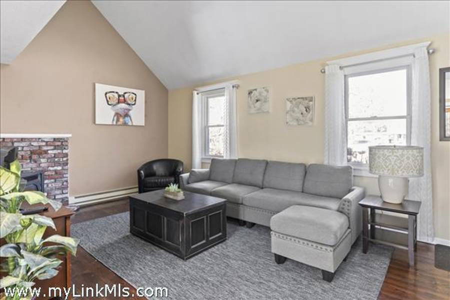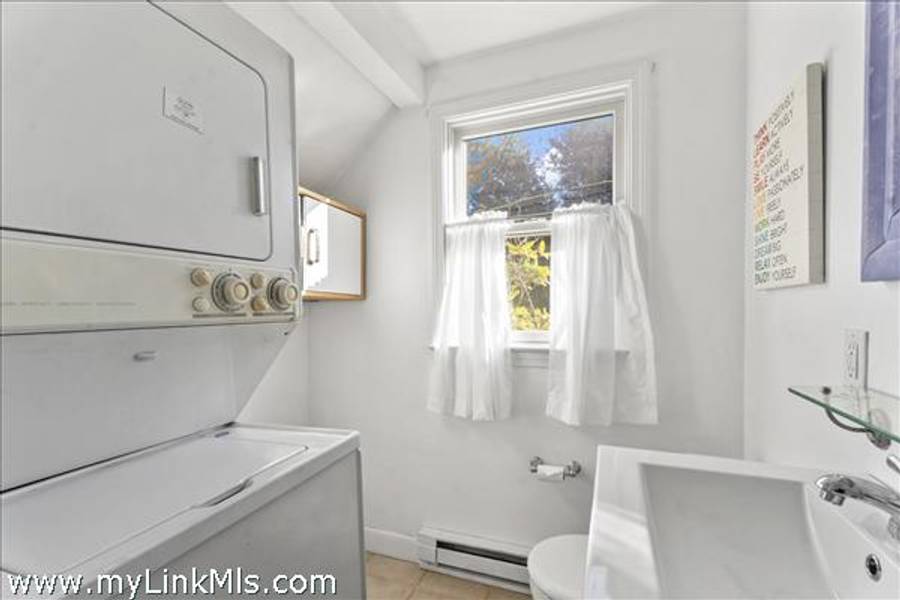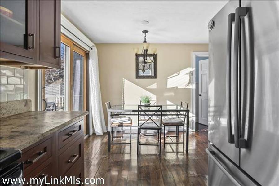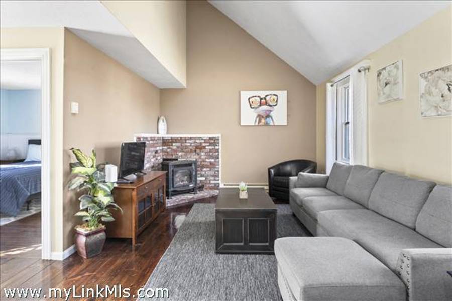 Enter into the living room equipped with coat closet and gas woodstove nicely situated in the corner. Beyond is the dining area with sliders out to a great deck, 1/2 bath with laundry, kitchen and bedroom.