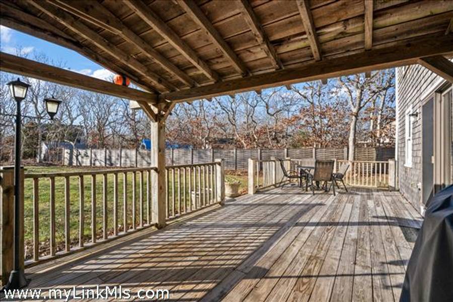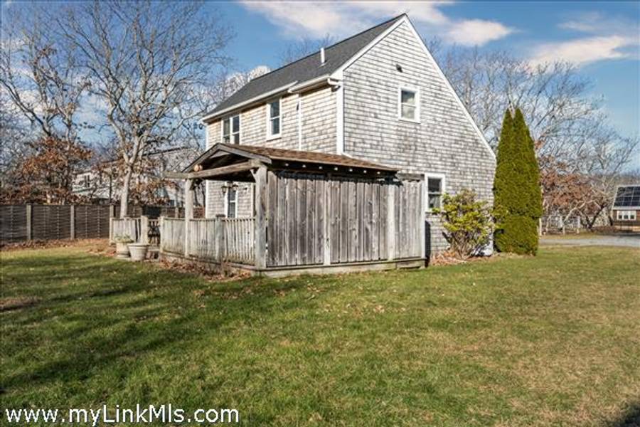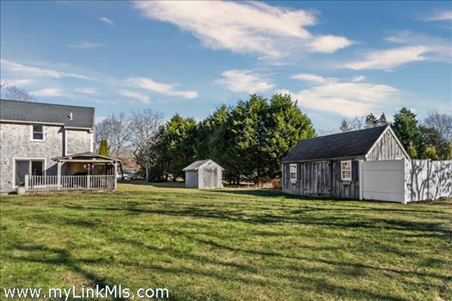 This cozy home on Saddle Club Road offers an inviting layout with vaulted ceilings that create a bright, airy feel. With three bedrooms, including one conveniently located on the first floor—there's plenty of space. The open-concept kitchen and dining area flow to a sunny deck, perfect for outdoor dining or unwinding after a day at the beach. Recent updates bring peace of mind and curb appeal, including a new roof, cedar siding, skylights, windows, and exterior trim. Set on over half an acre of landscaped and irrigated grounds, the property features a large back deck, an outside fireplace, a classic storage shed for bikes and beach gear and a bonus shed space with electricity. Centrally located near bike paths and offers easy access to Morning Glory Farm, South Beach, and the heart of Edgartown Village.